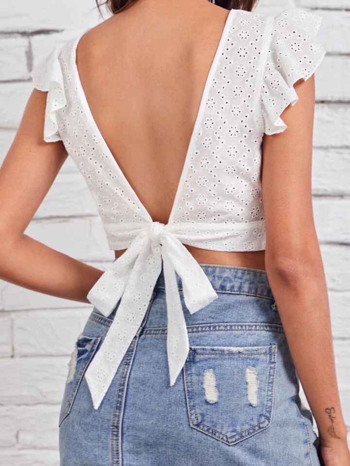 Blusa De Mangas De Mariposa Con Lazo Trasero Y Tejido Schiffy