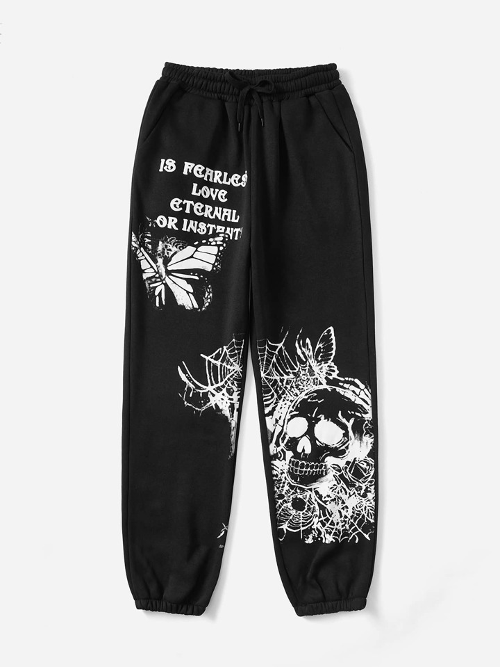 Pantalones deportivos con estampado de mariposa y slogan de cintura con cordón