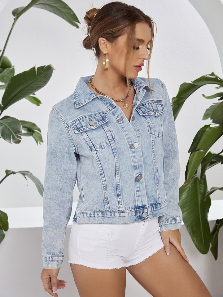 Cazadora mezclilla con botón delantero con bolsillo con solapa