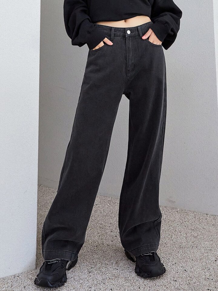 Jeans De Estilo Boyfriend Con Detalles De Botones Frontales Y Bolsillos