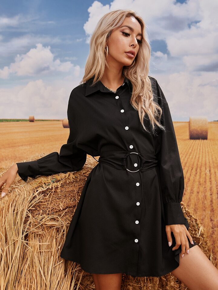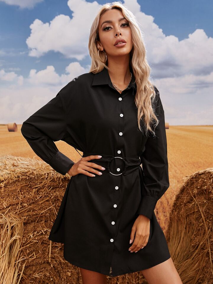 Camisa larga con cinturón con botón