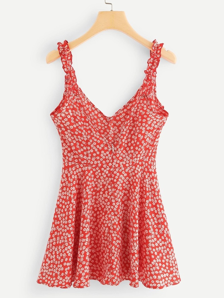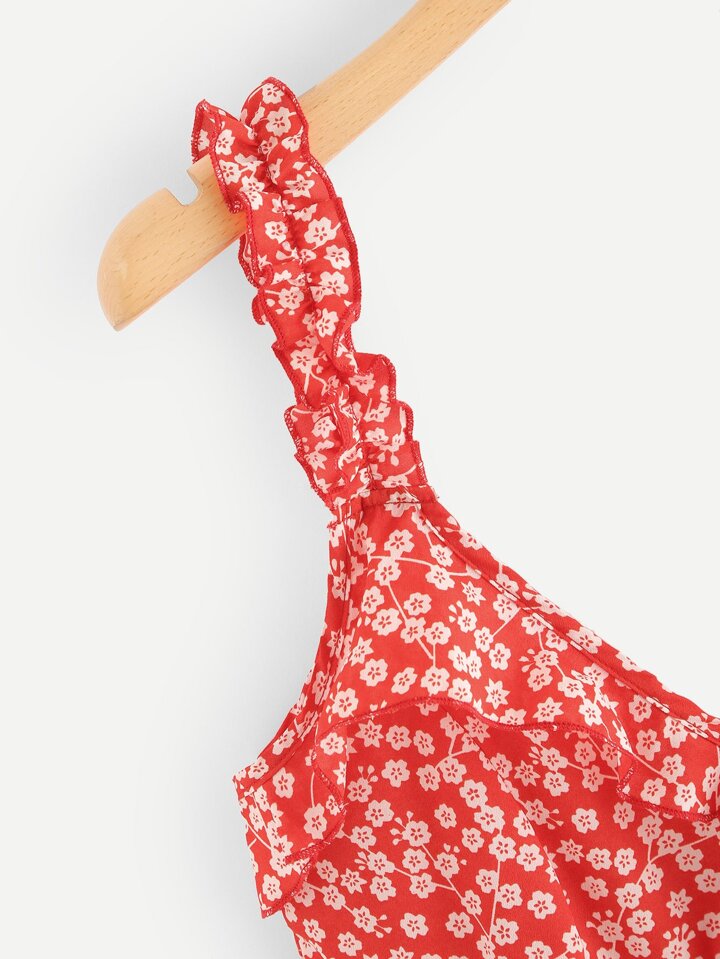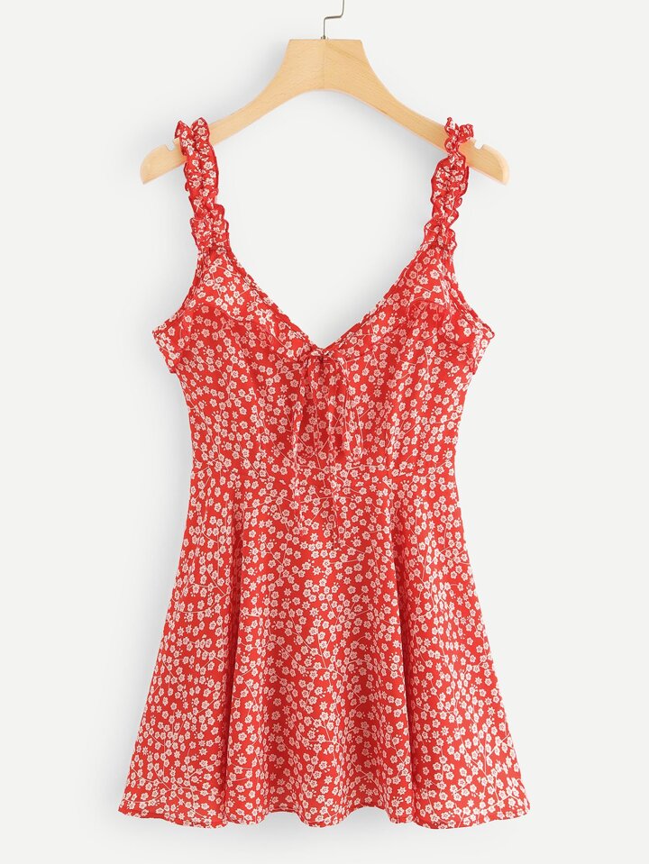Vestido ribete fruncido con estampado de calicó