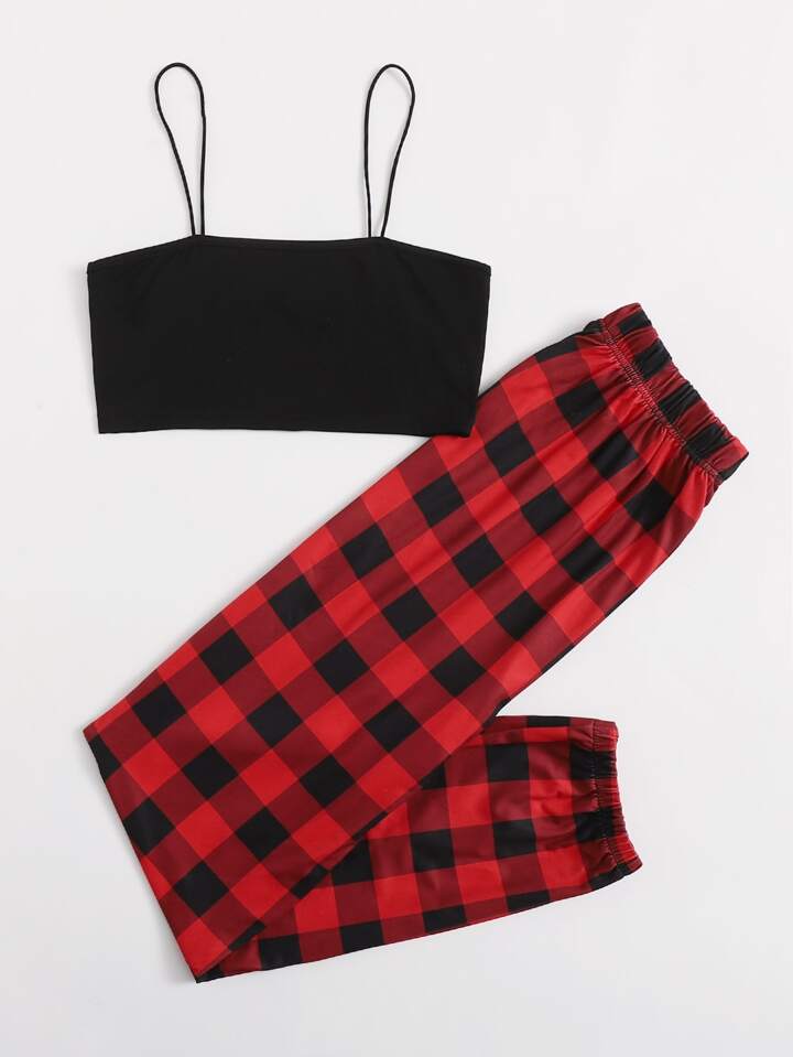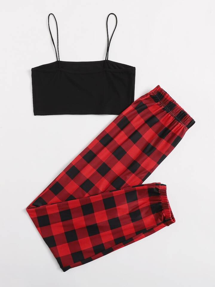 Conjunto de pijama top de tirantes con pantalones de guingán