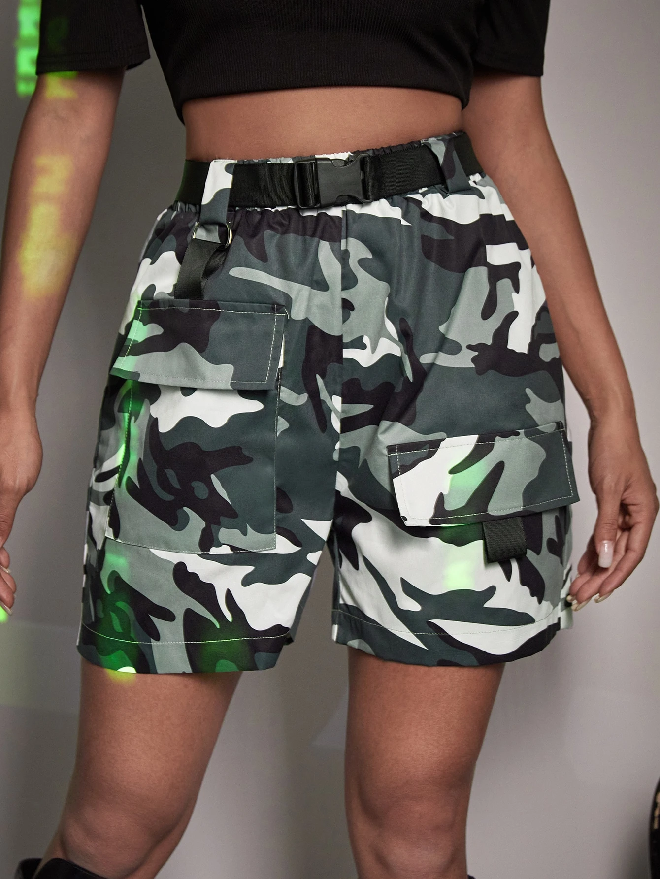 Shorts con estampado de camuflaje con bolsillo con solapa
