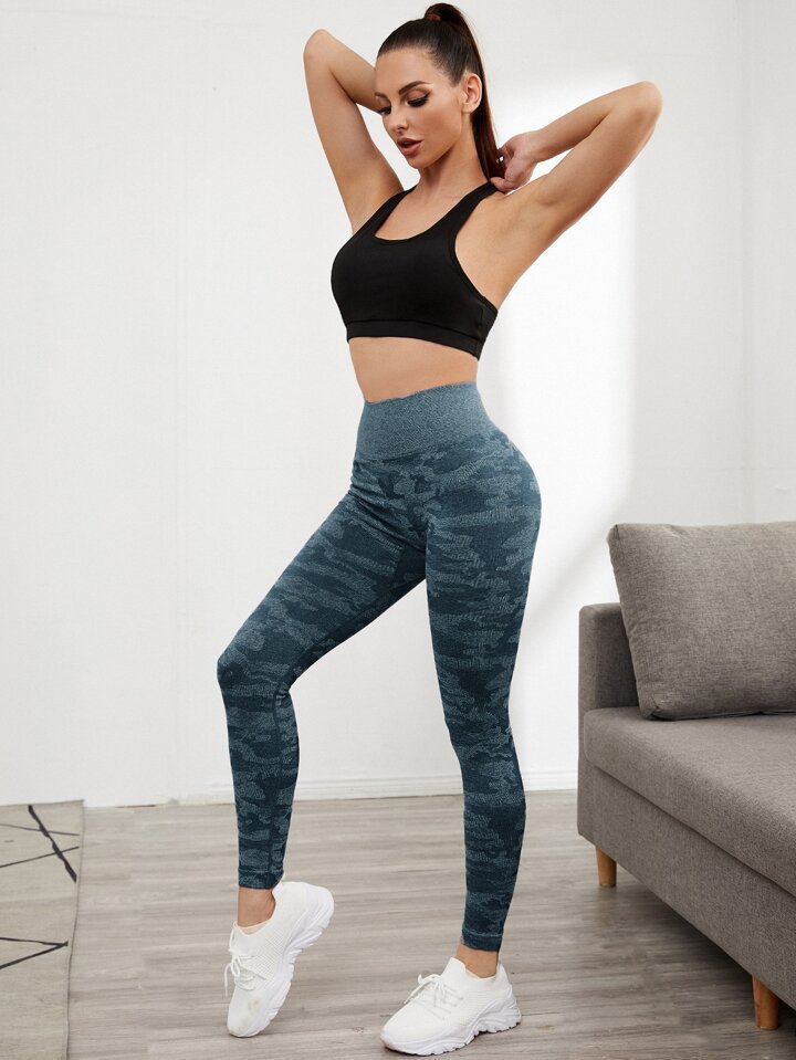 Leggings deportivos con estampado de camuflaje inconsútil