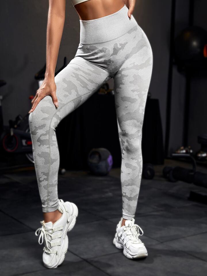 Leggings de yoga con estampado de camuflaje Leggings de gimnasia con control de barriga y estiramiento alto sin costuras
