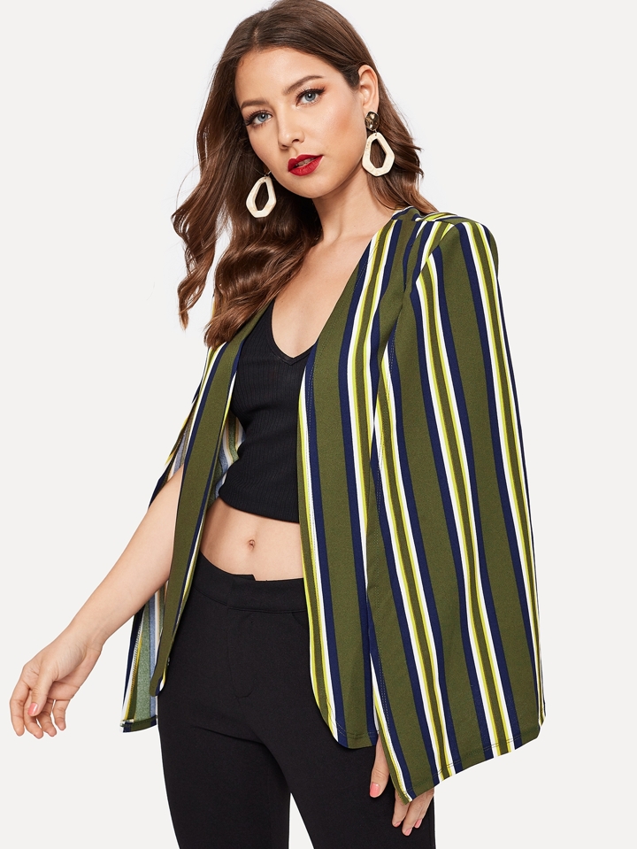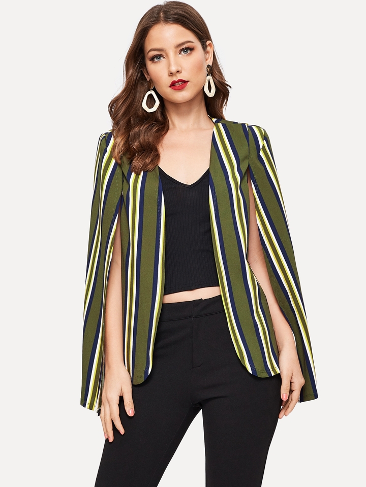 Chaqueta de rayas verticales de manga capa