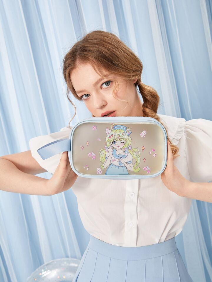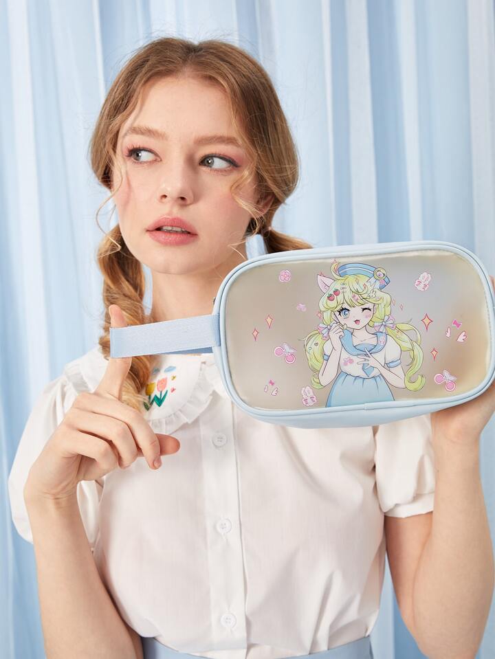 Bolso de maquillaje con estampado de figura de dibujos animados