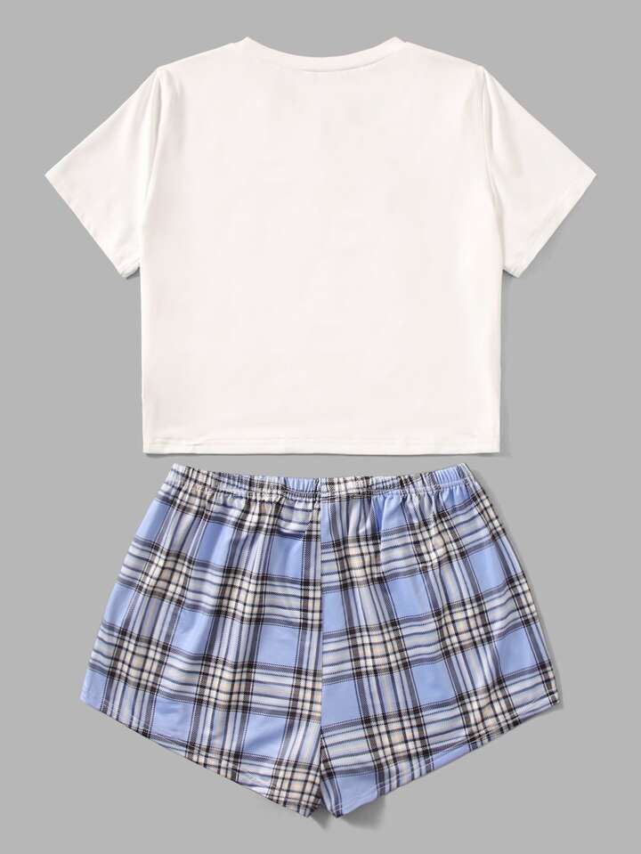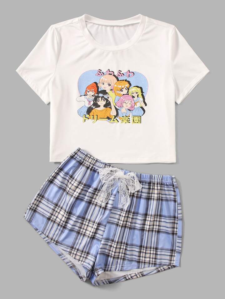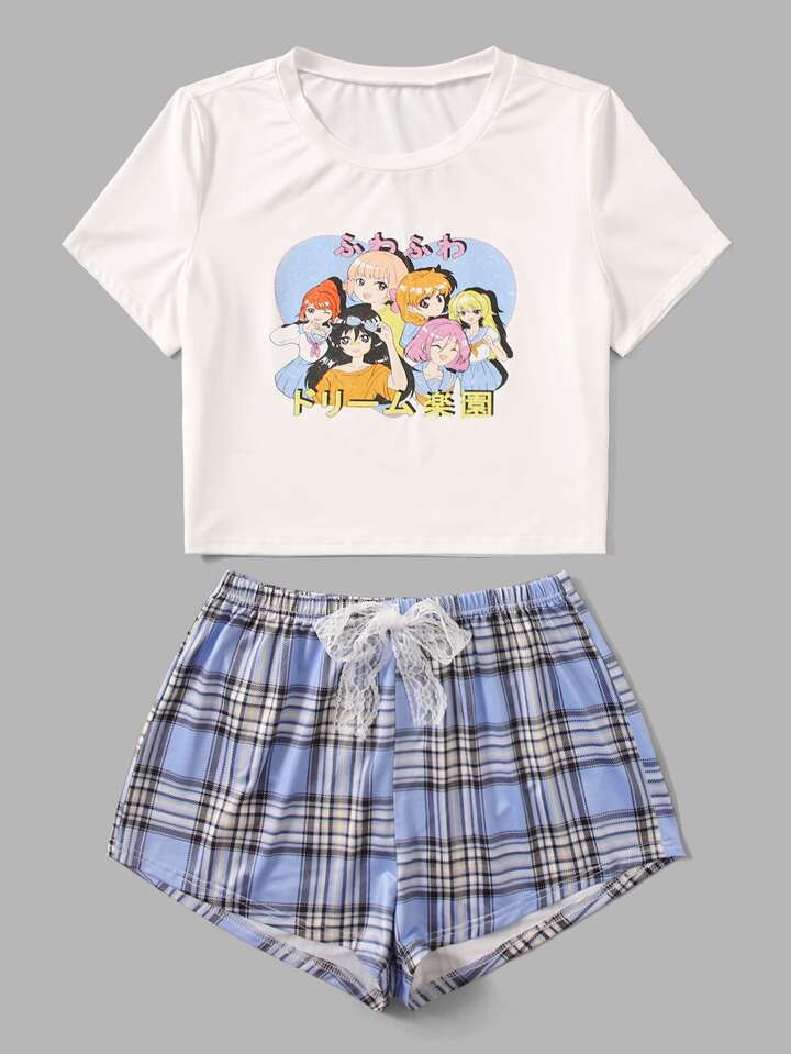 Conjunto de pijama con estampado de figura de dibujos animados de cuadros