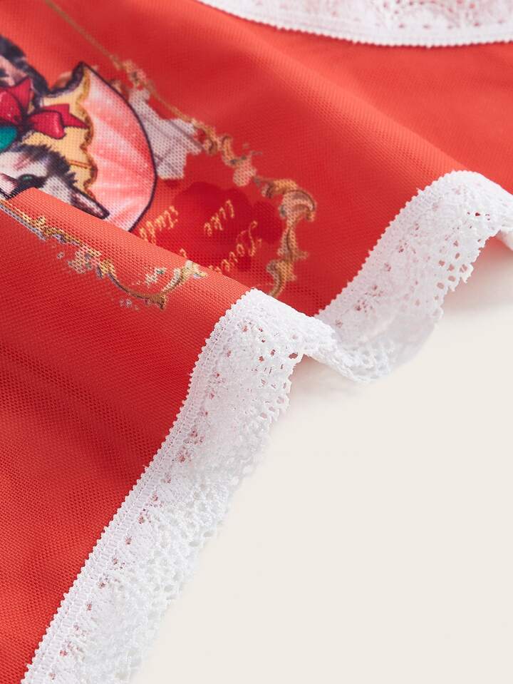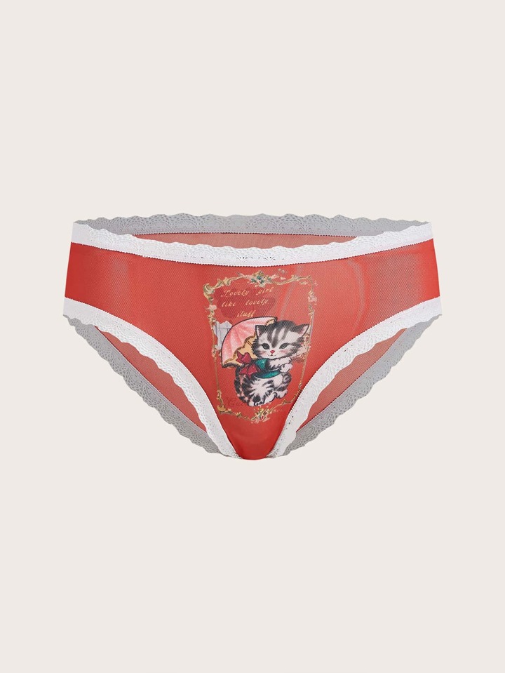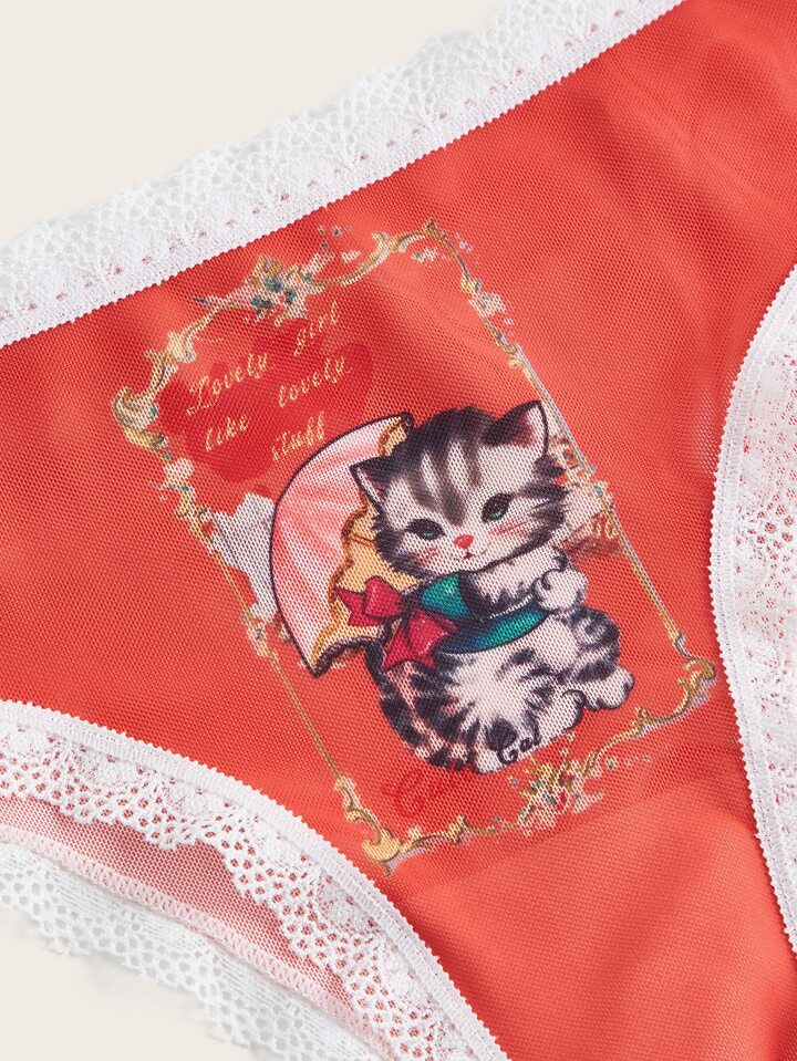 Bragas con estampado de dibujos animados con encaje en contraste