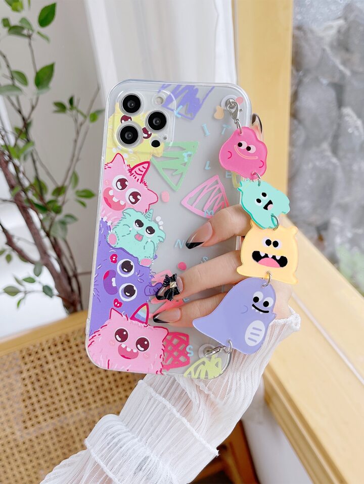 Funda para móvil con estampado de dibujos animados con con tira de mano