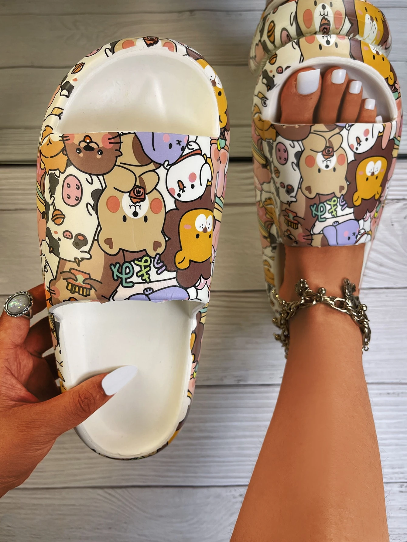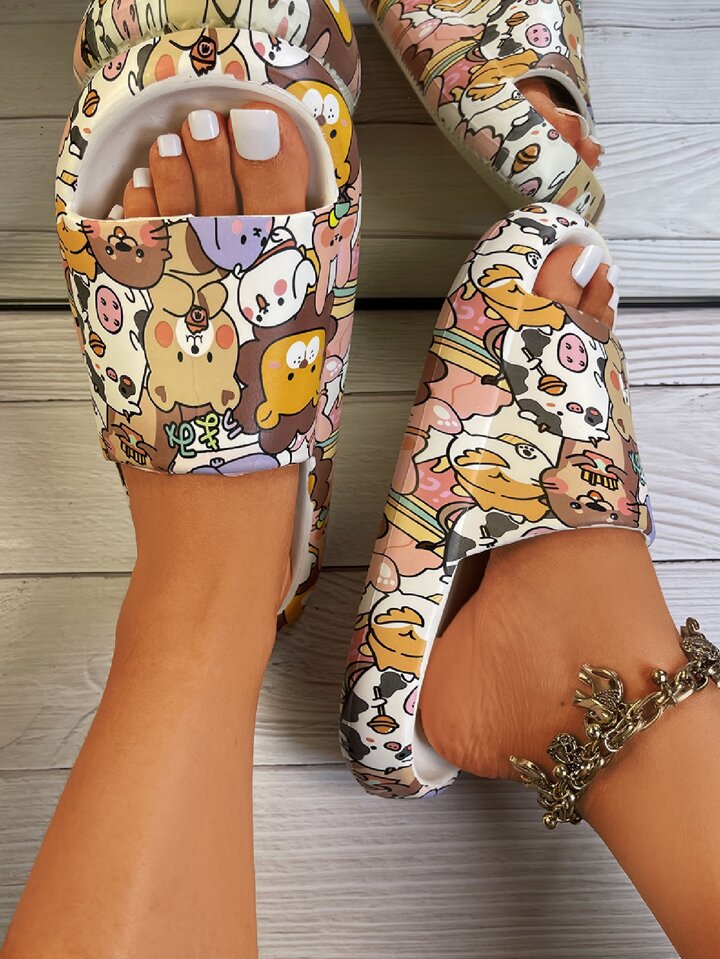 Chanclas banda única con estampado de dibujos animados