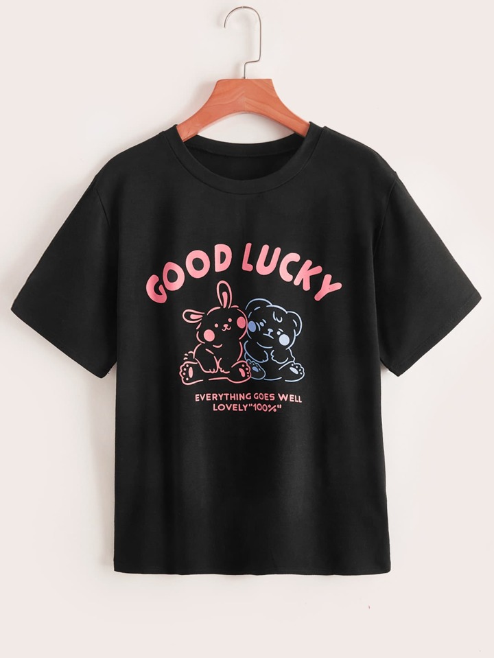 Camiseta con estampado de dibujos animados y letra