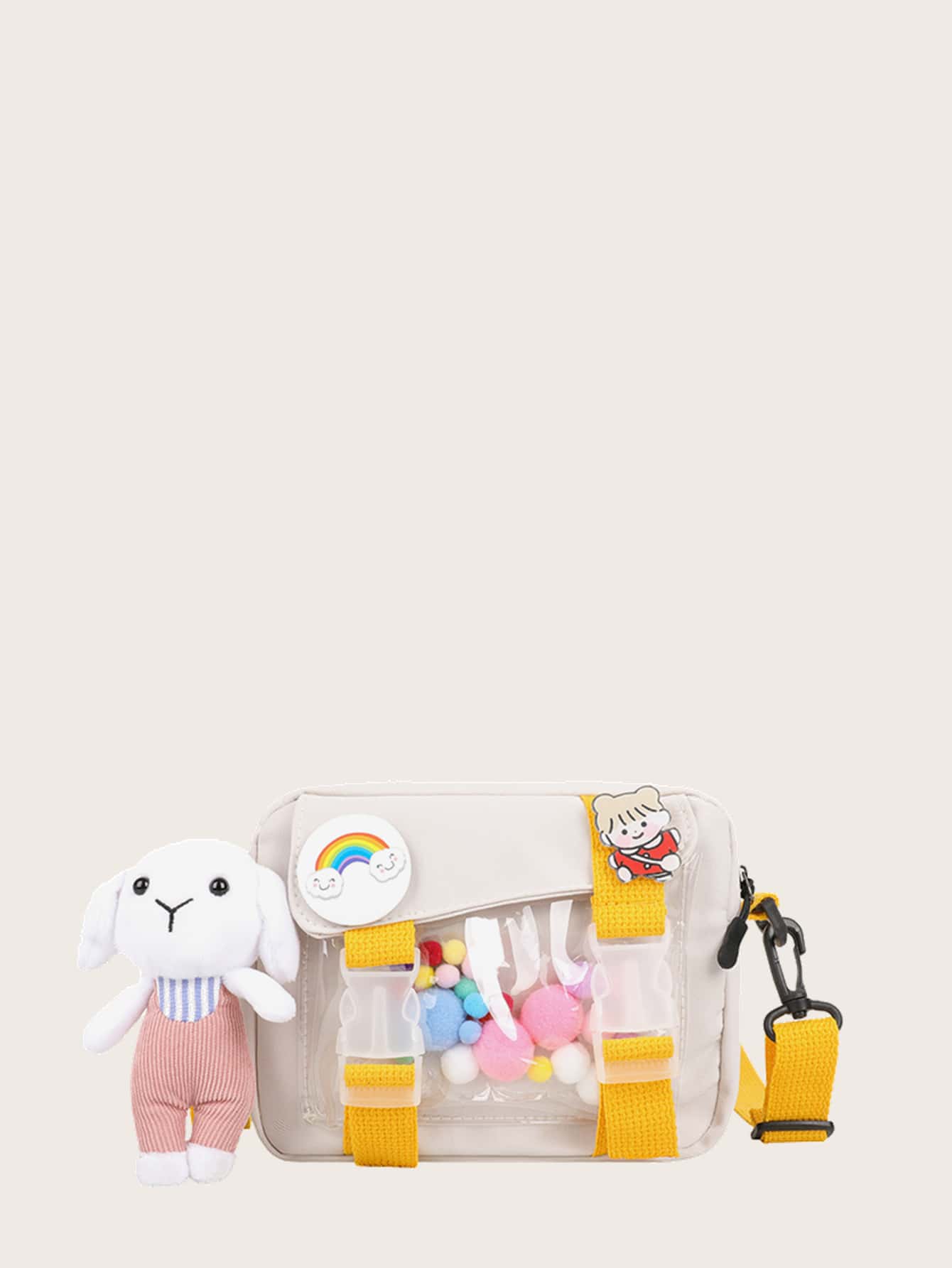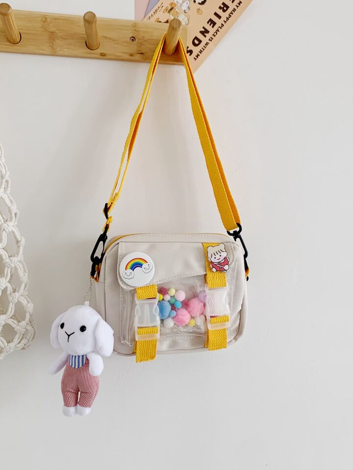 Bolso bandolera con pompón con dibujos animados