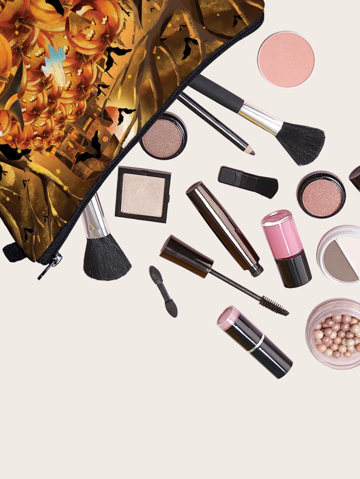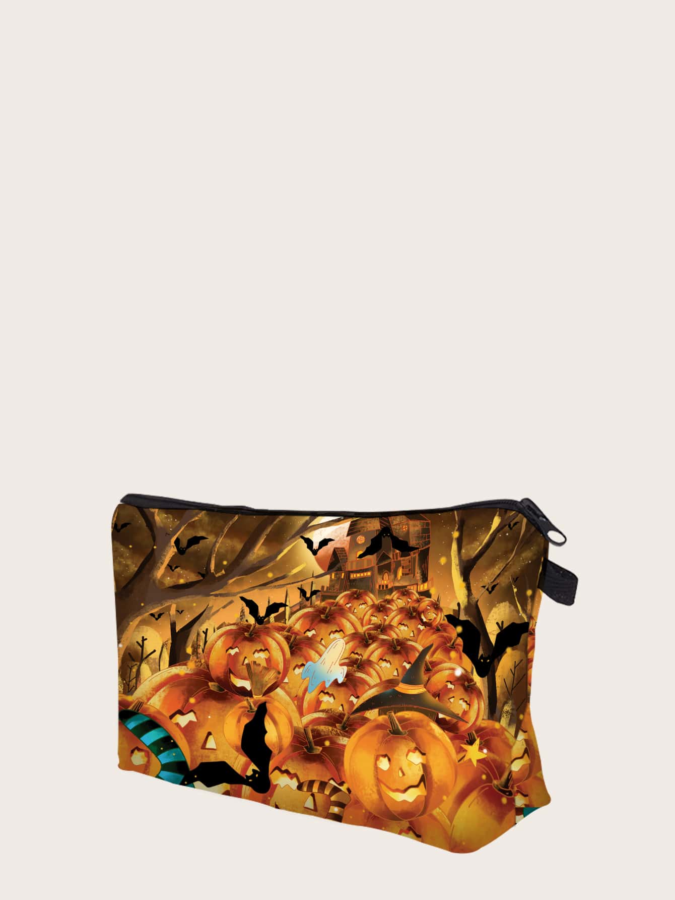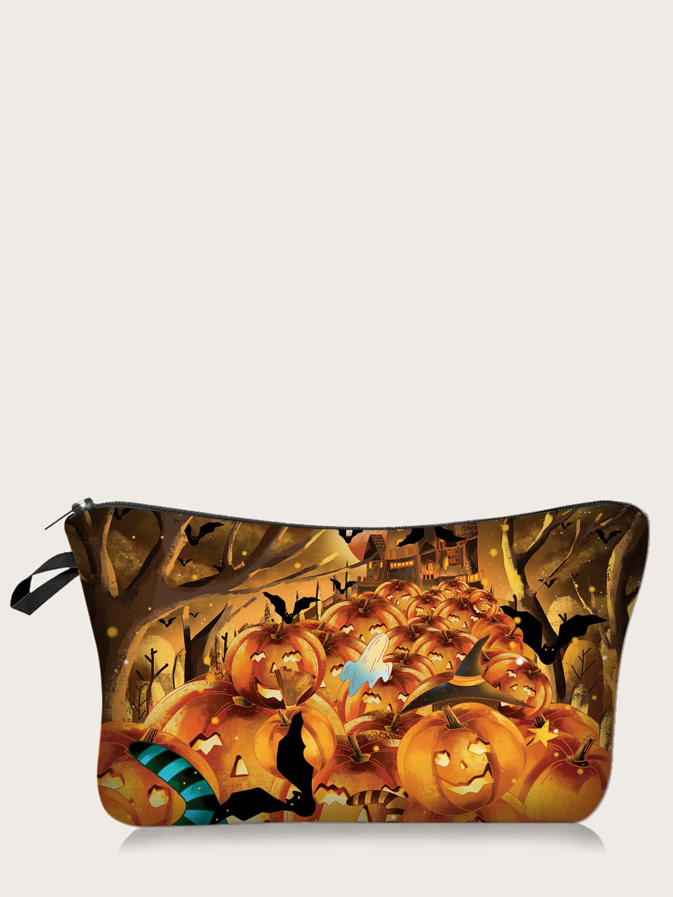 Bolso de maquillaje con dibujos animados calabaza cremallera