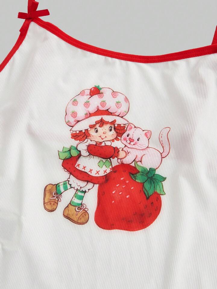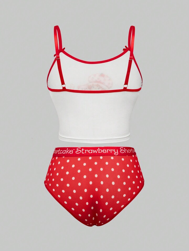 Conjunto de sostén y calzón con estampado de fresa de dibujos animados para mujeres, ropa de Navidad