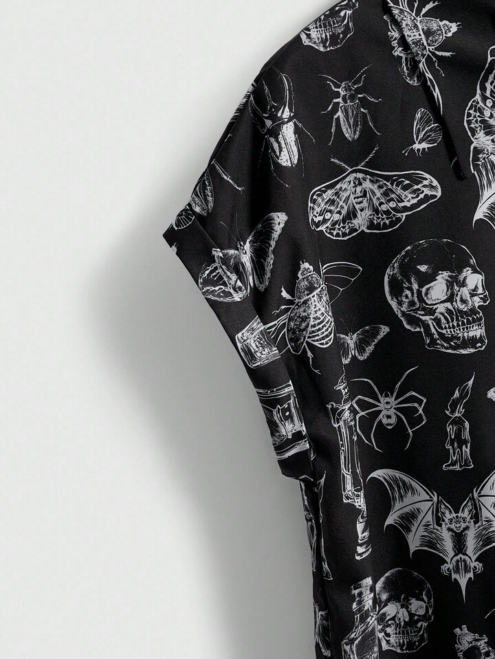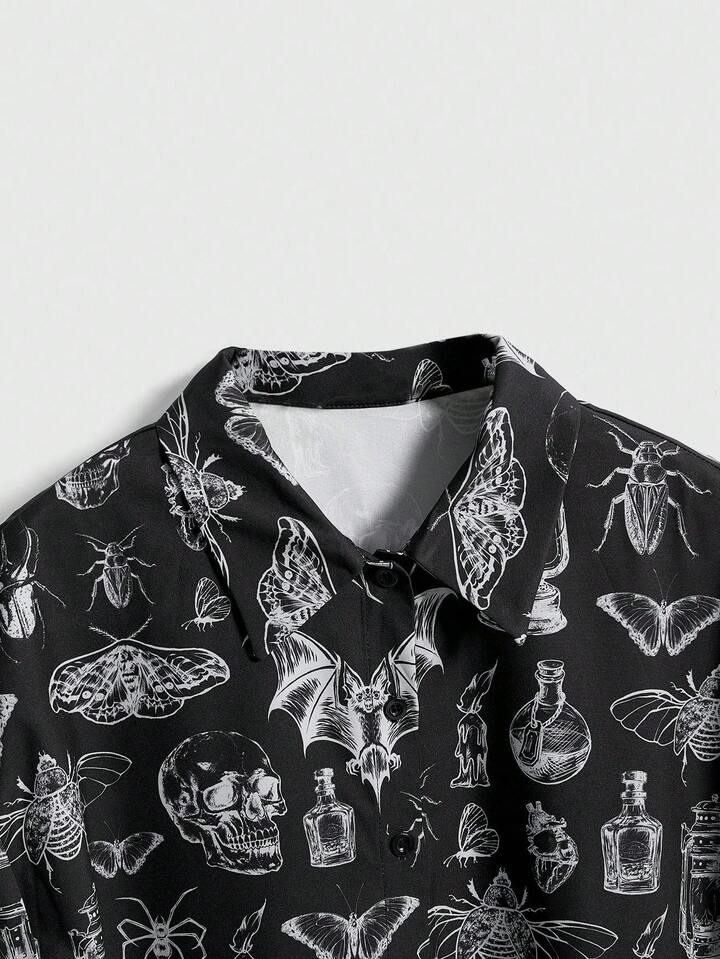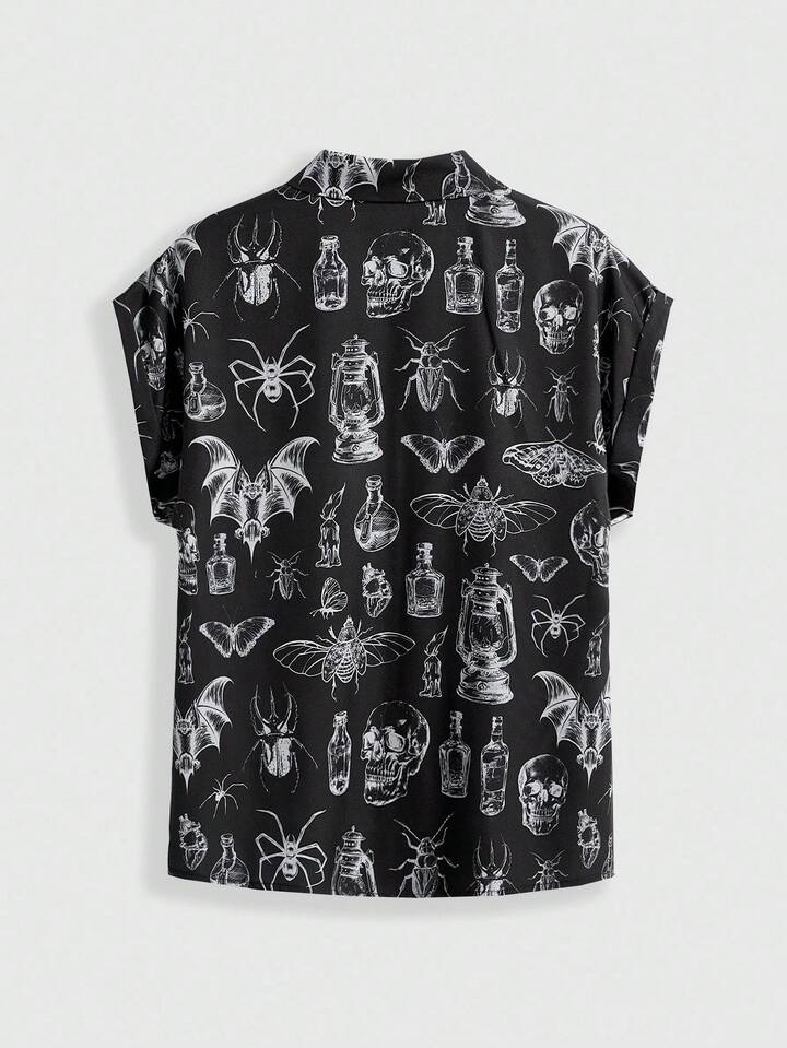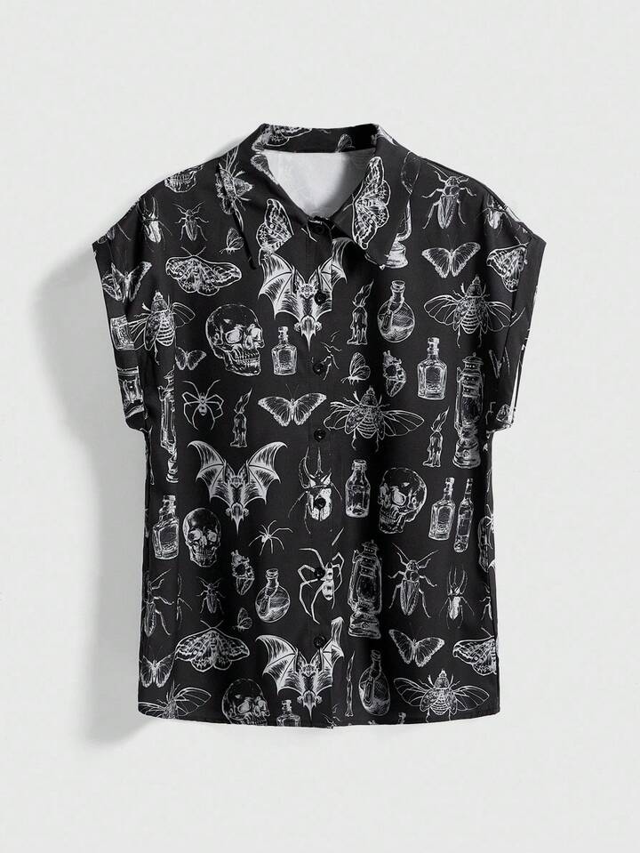 Goth Camisa casual de mujer con estampado retro de luna y planta en estilo gótico