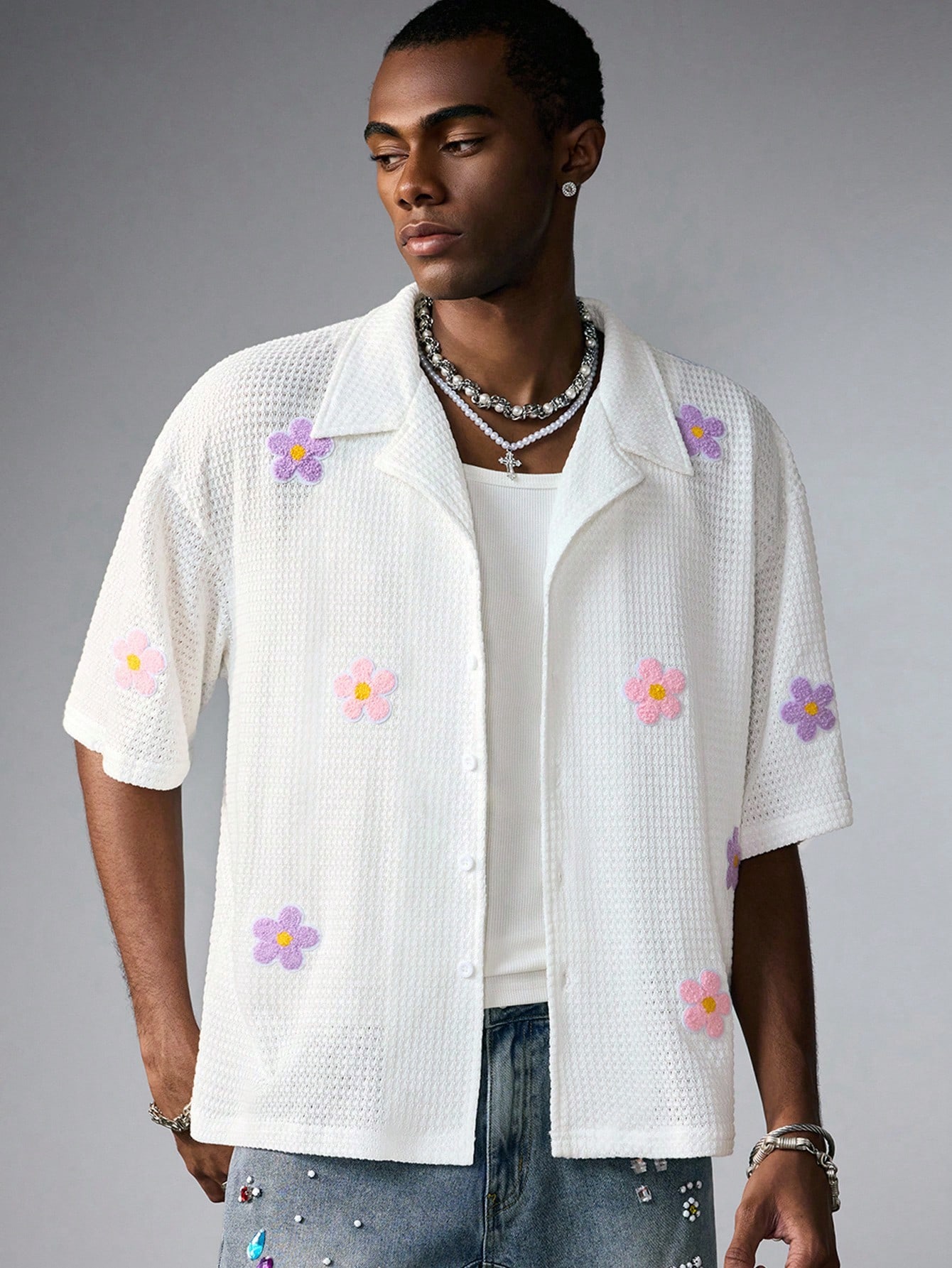 Casual Camisa de manga corta con estampado floral y corte recto para hombre