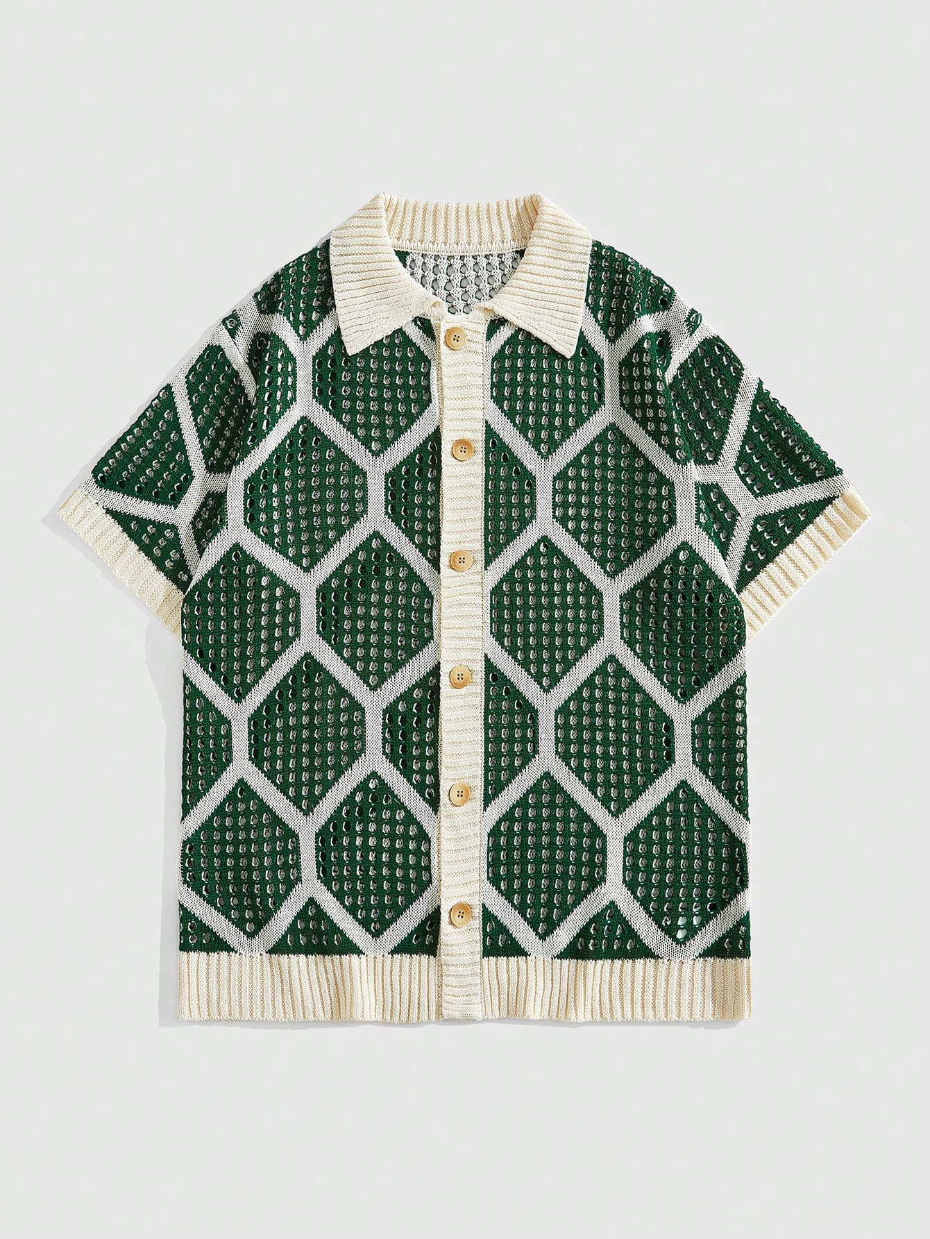 Casual Parte superior tejida con un solo pecho y manga corta con estampado de hexágono para hombres