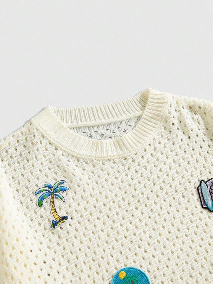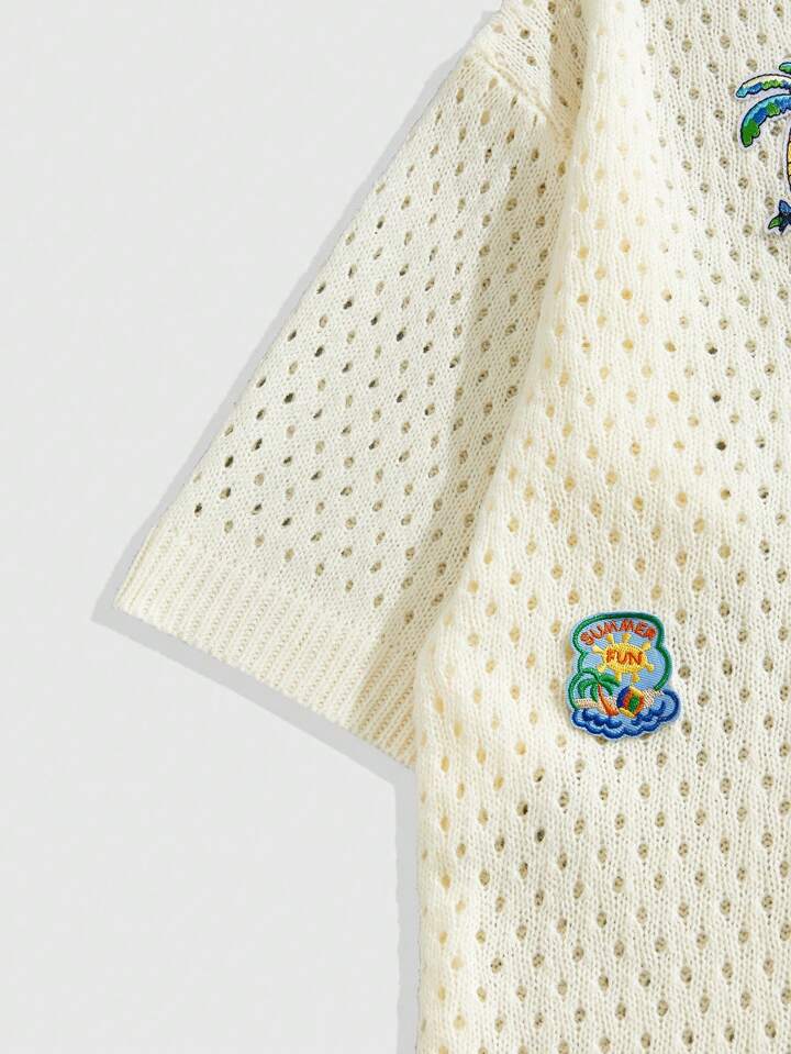 Casual Camiseta holgada de punto para hombre, Top de punto de manga corta