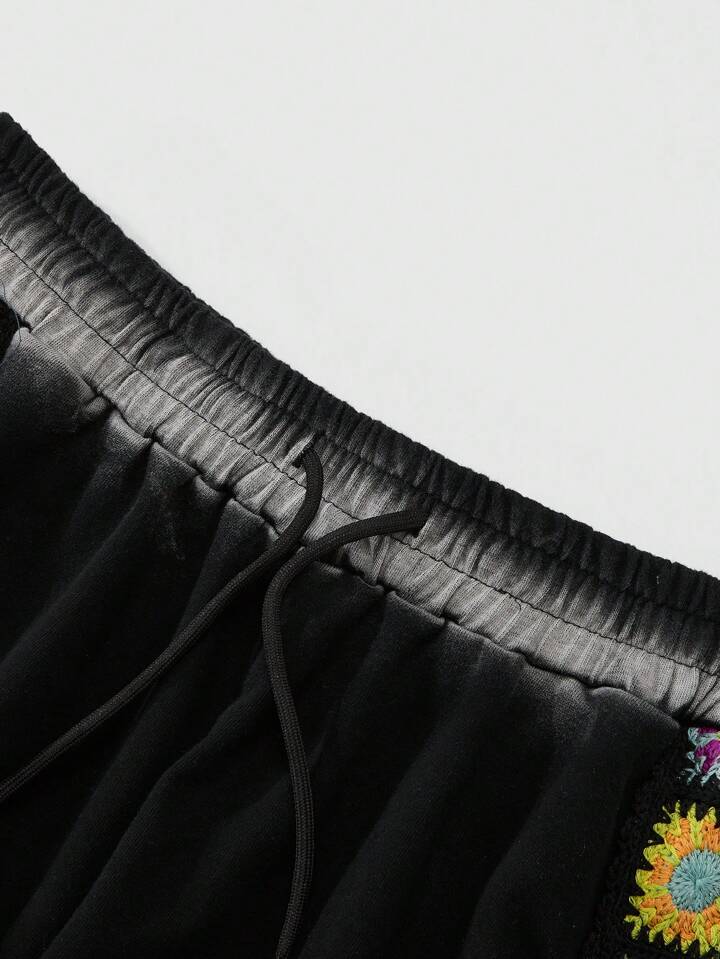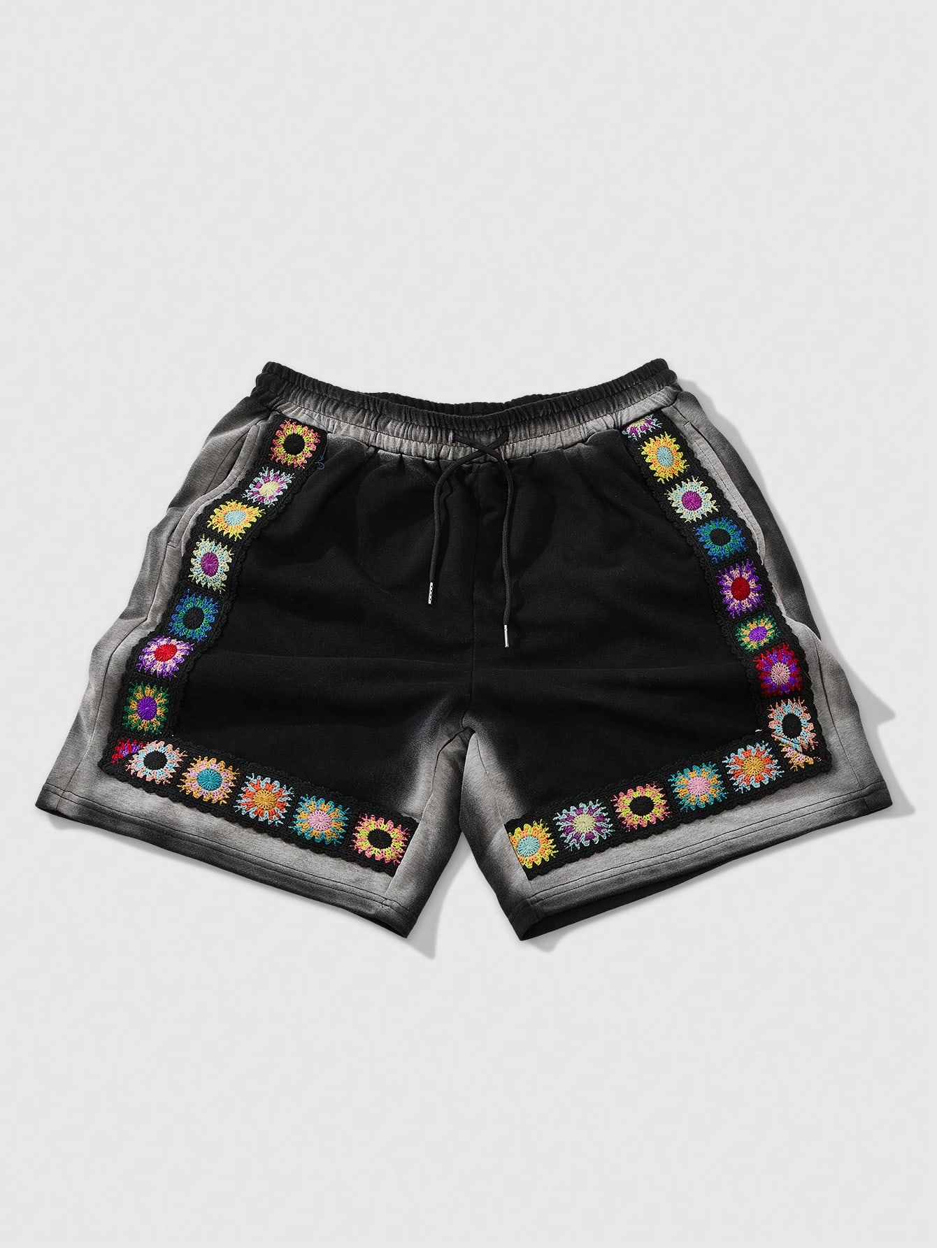 Casual Pantalones cortos de verano para hombres con nuevo diseño, estampado vintage de encaje y parches, pantalones cortos deportivos negros y grises para vacaciones
