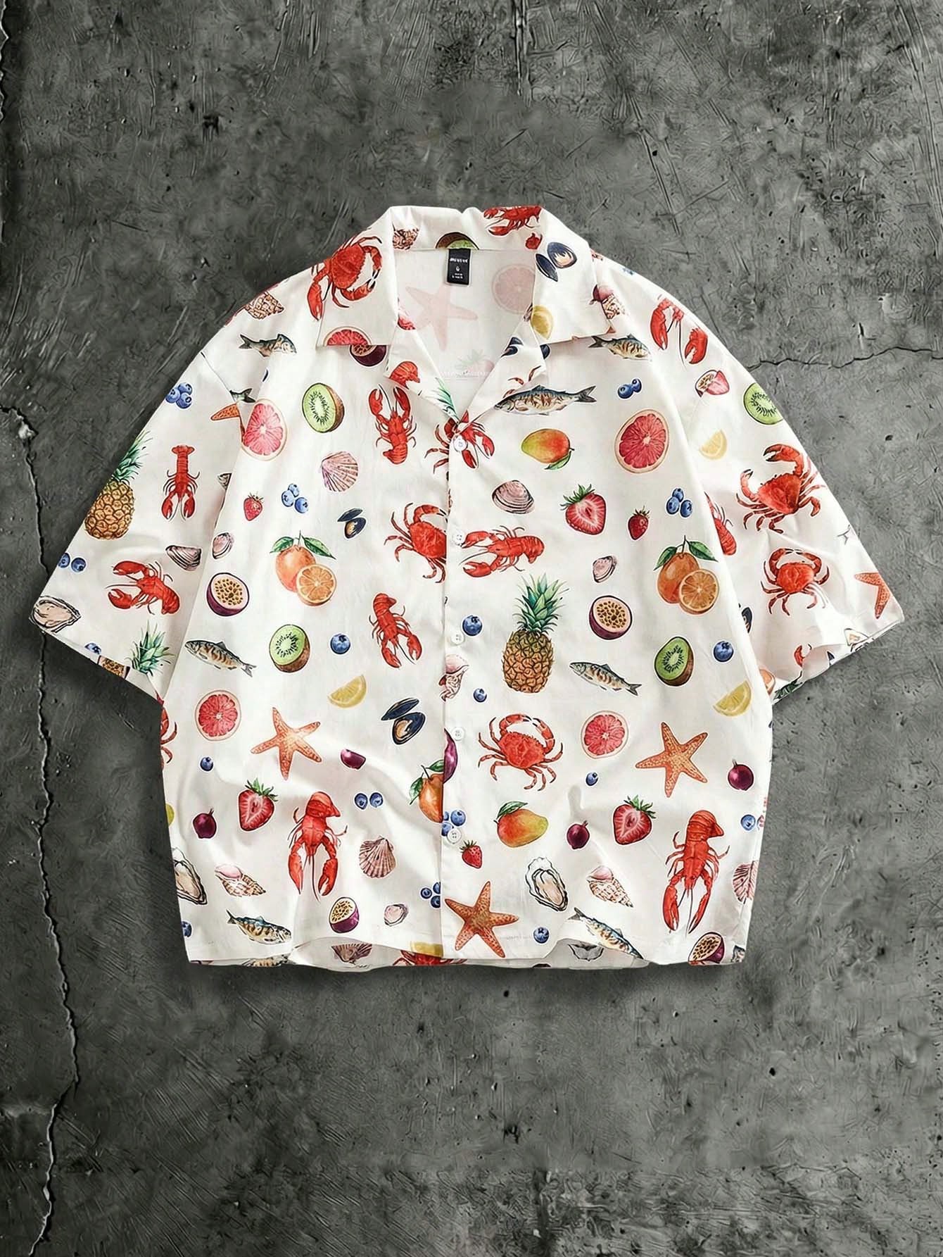 Casual Camisa de manga corta con botones y estampado digital para vacaciones de verano para hombres