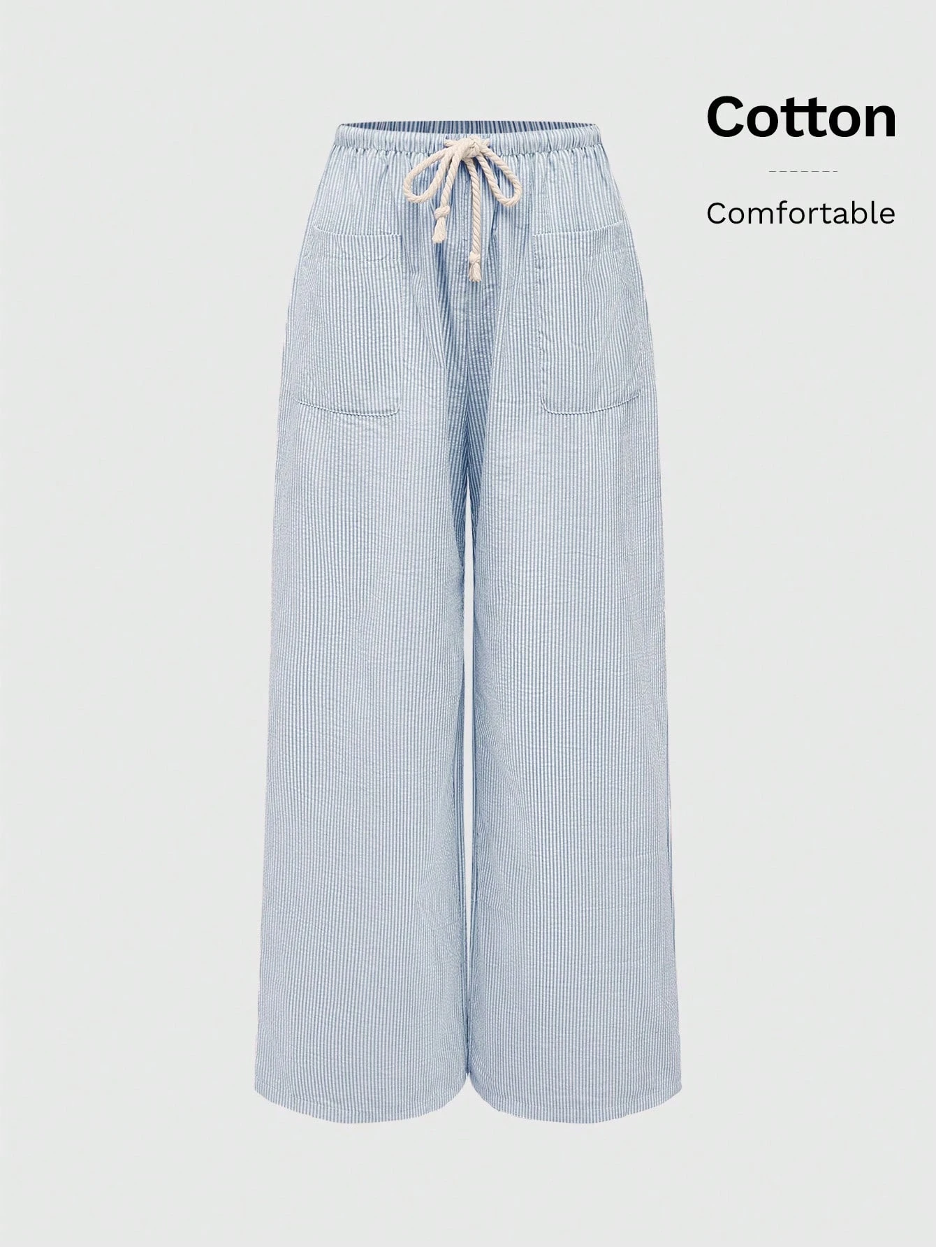 Pantalones anchos rectos y sueltos de lino con rayas y corbata en la cintura para mujer, ropa de casa, escuela