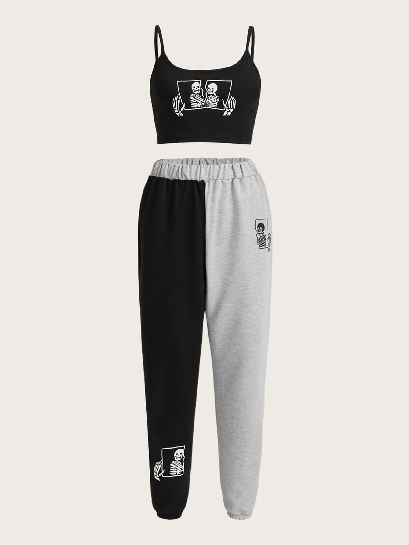 Catsneeze con estampado de esqueleto Cami & de color combinado Pantalones deportivos