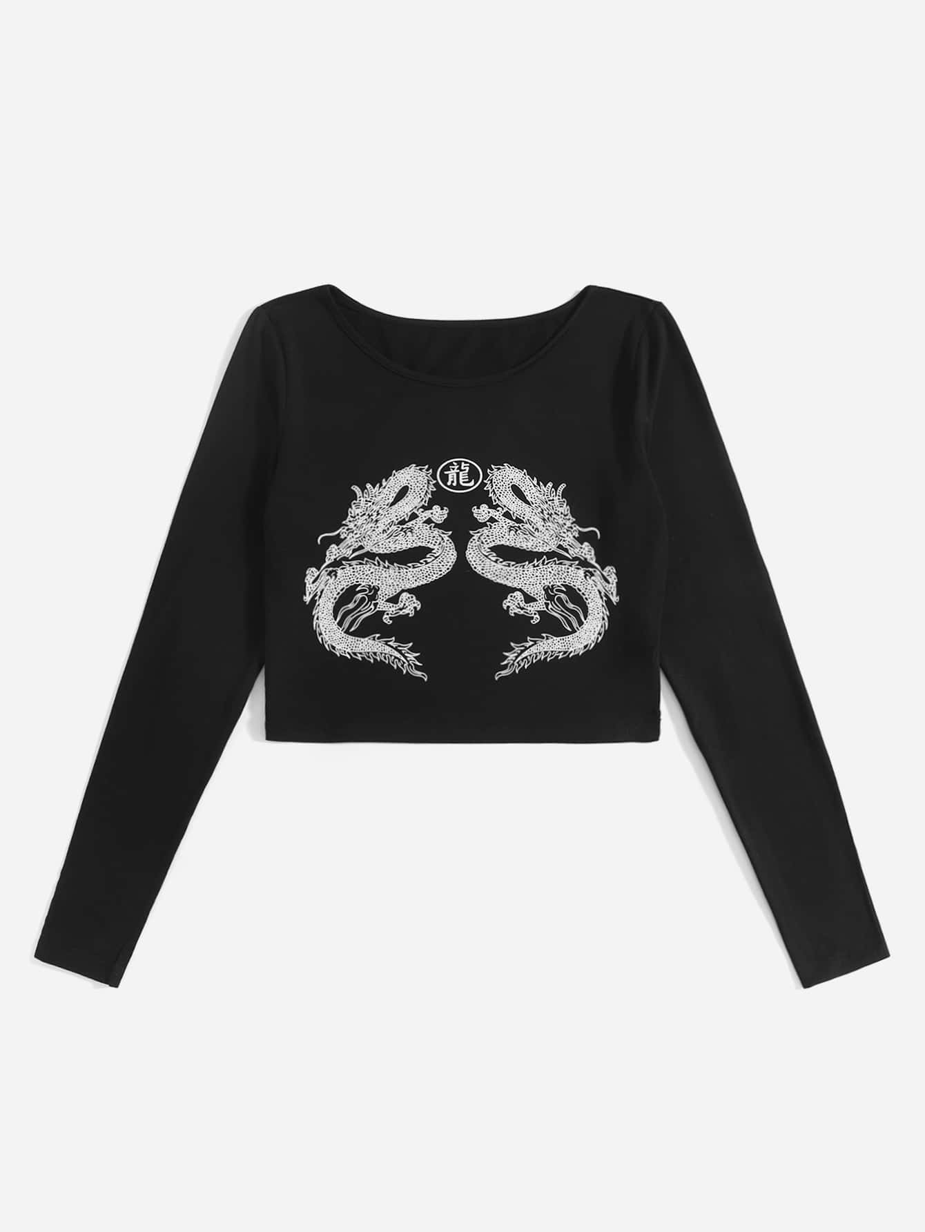 Camiseta con estampado de dragón chino
