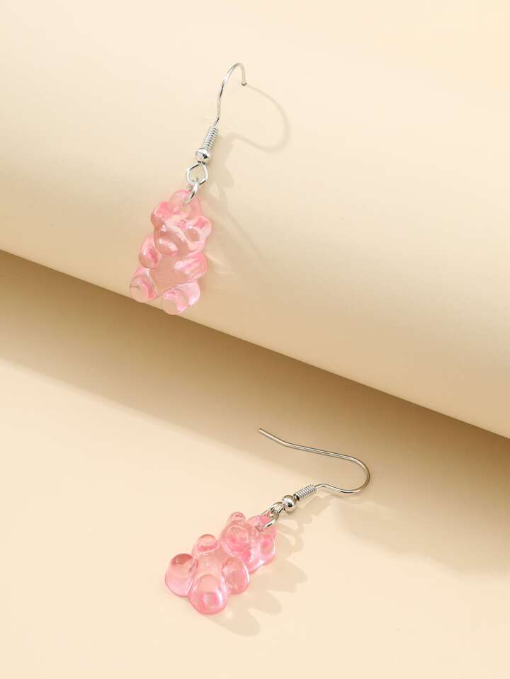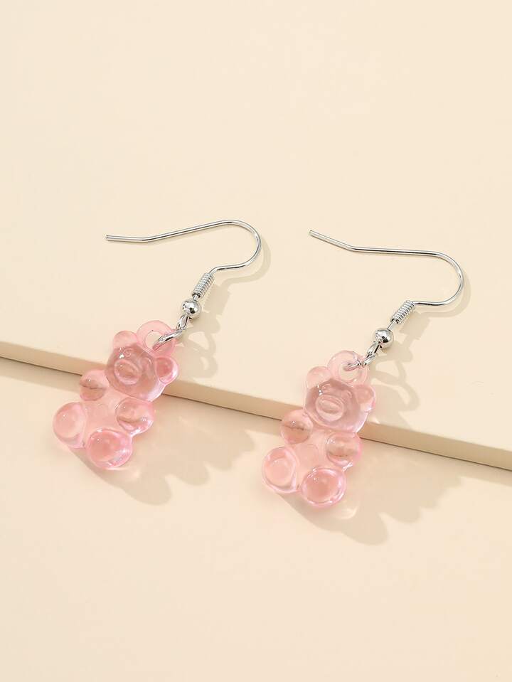 Pendientes largos con oso transparente