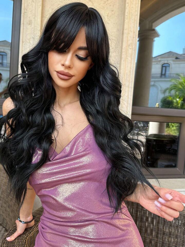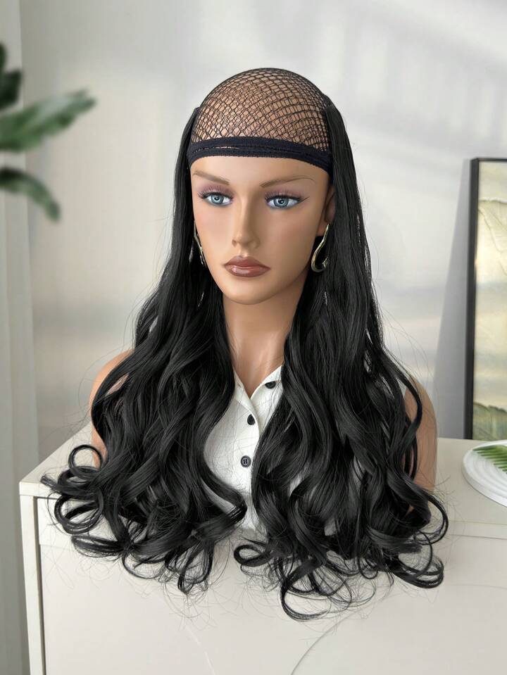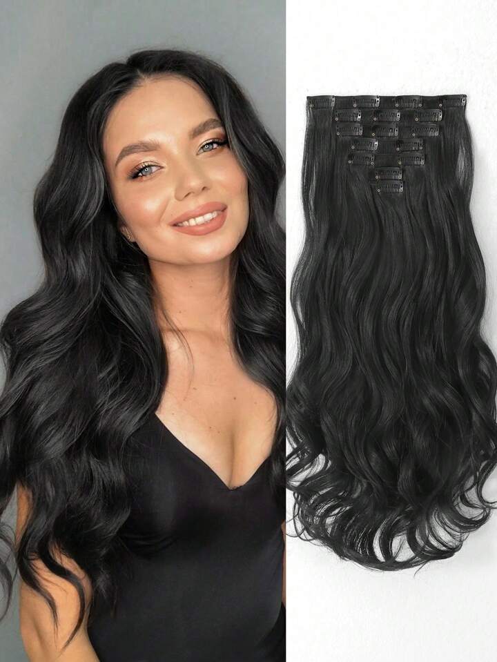 Extensiones de cabello con clip para mujeres con negro 7 piezas de 22 pulgadas, extensiones de cabello con clip Cabello rizado ondulado Extensión de cabello sintético de cabeza completa Postizos