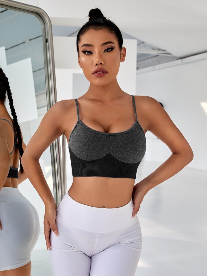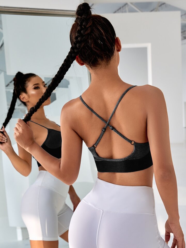 Sujetador deportivo de color combinado con tira cruzada de espalda abierta