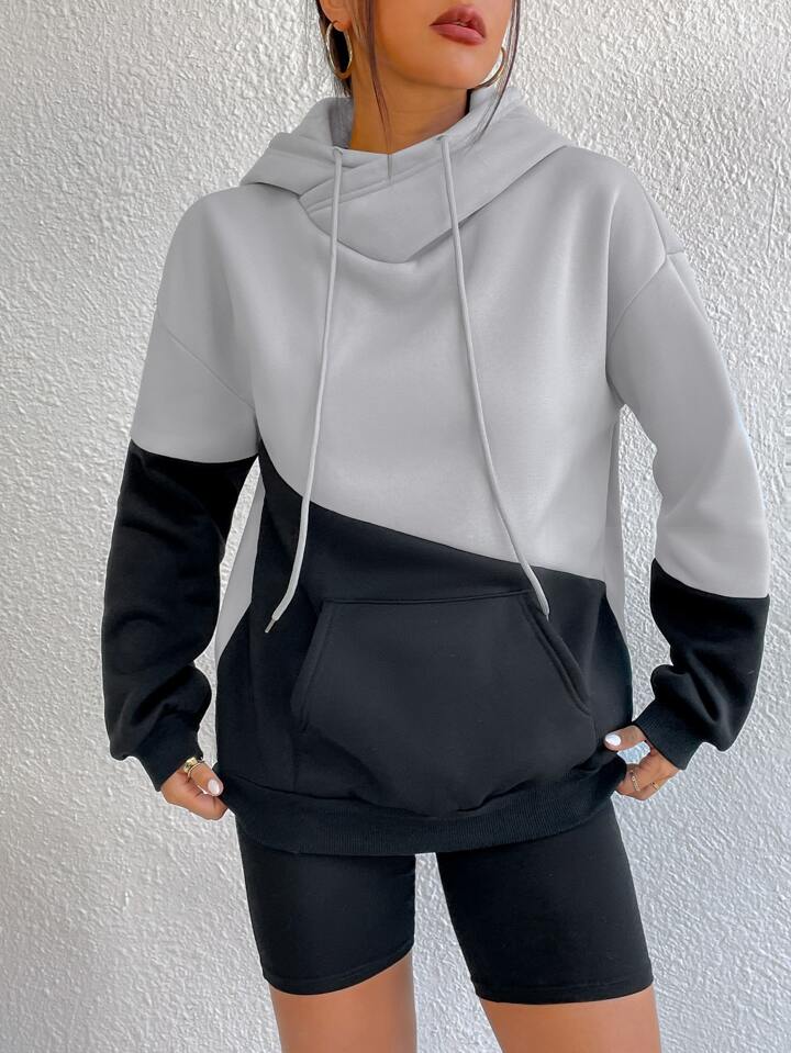 Capucha de color combinado con bolsillo de canguro con cordón