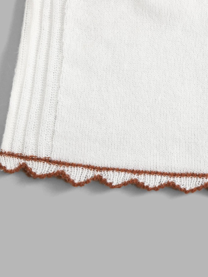 Top de color combinado ribete en forma de lechuga tejido de canalé