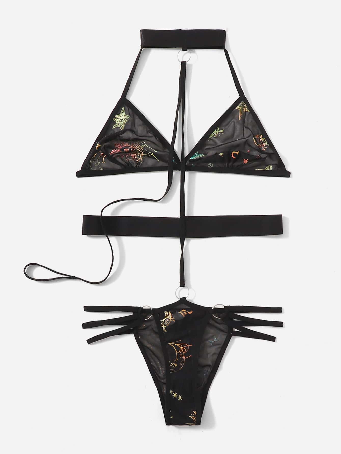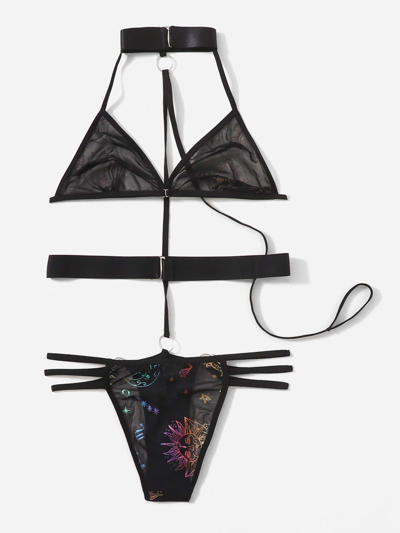 Body teddy con estampado de constelación vinculado con aro con gargantilla