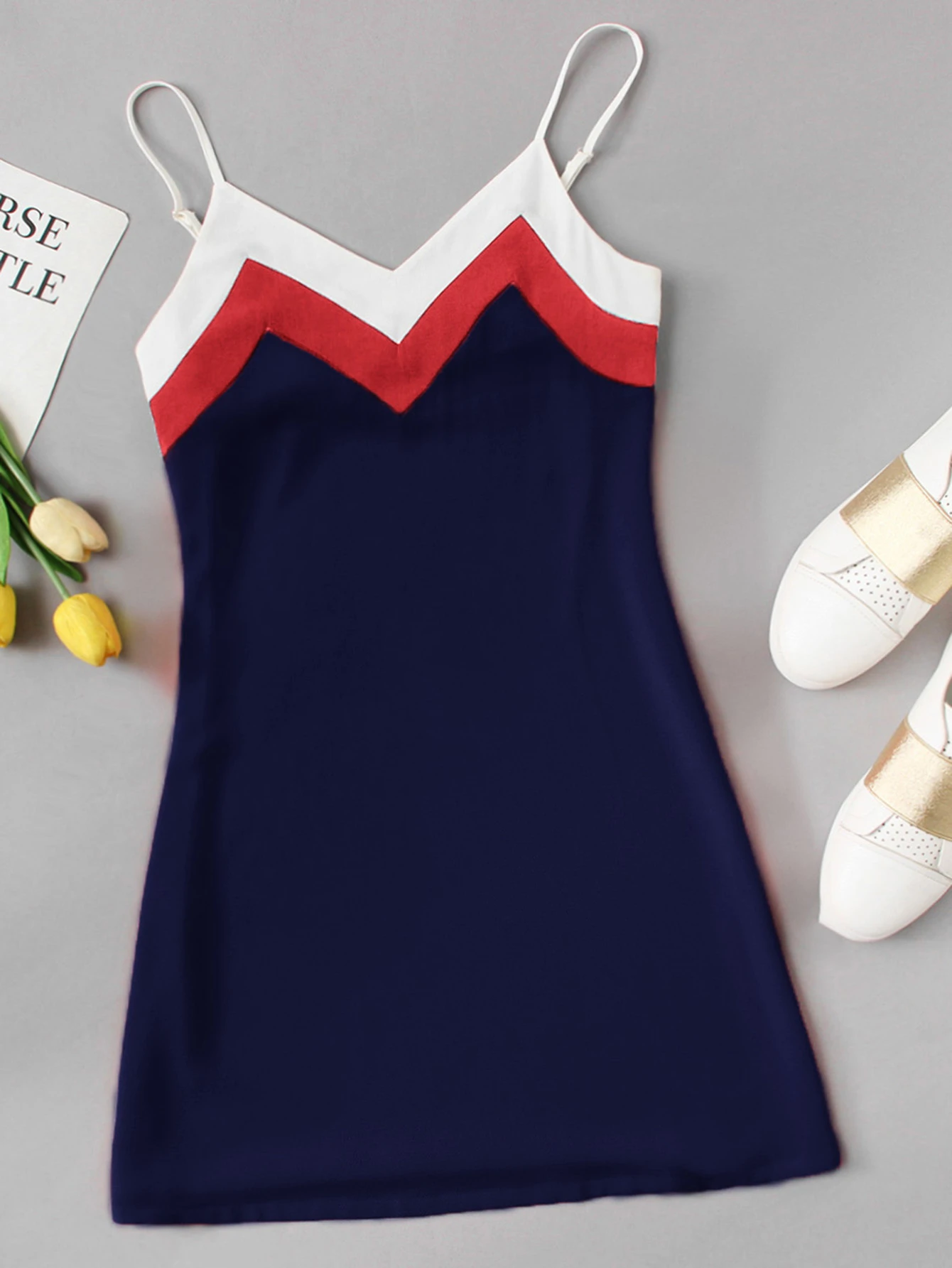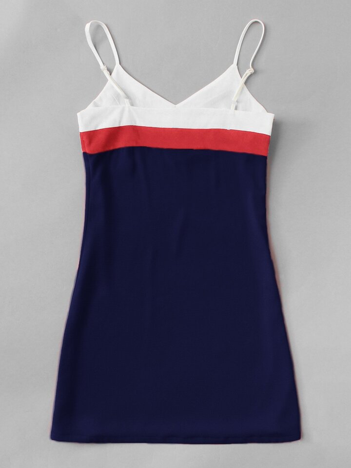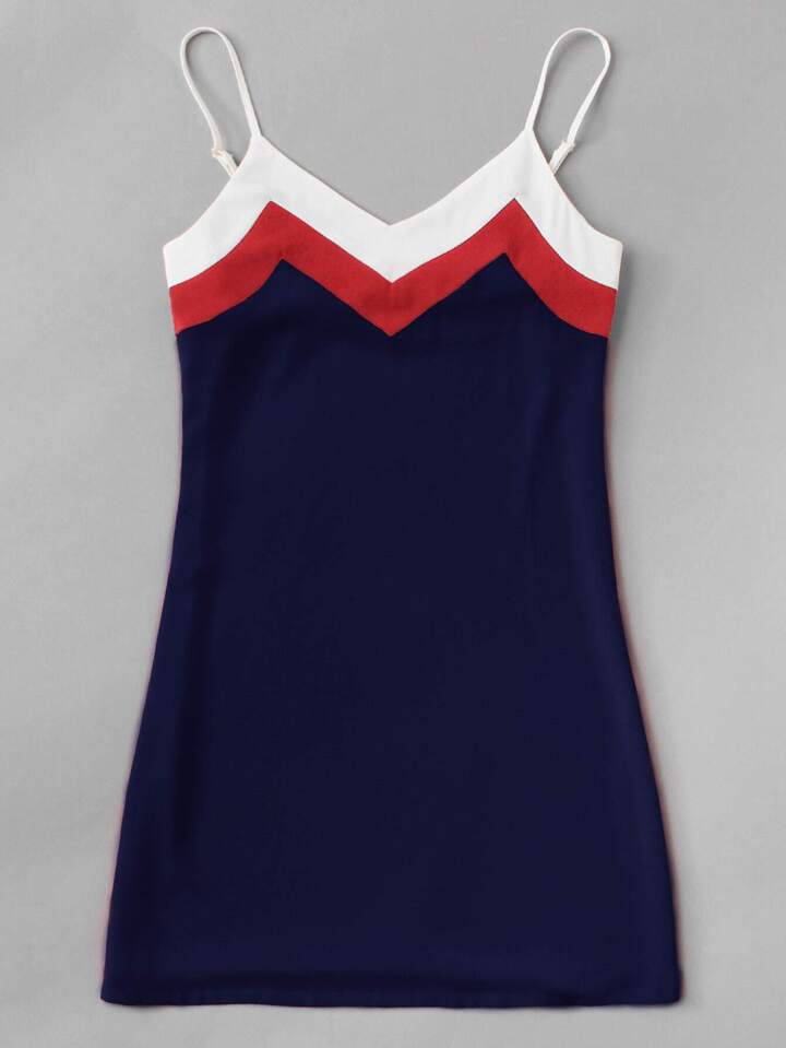 Vestido de tirante de chevron en contraste