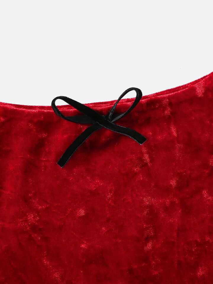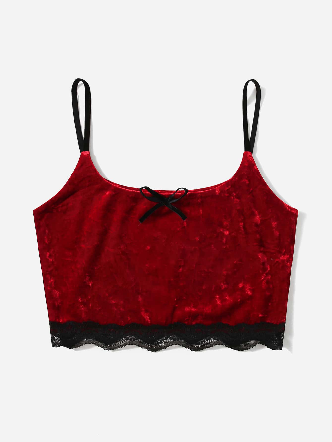 Top de tirantes con encaje en contraste con lazo de terciopelo