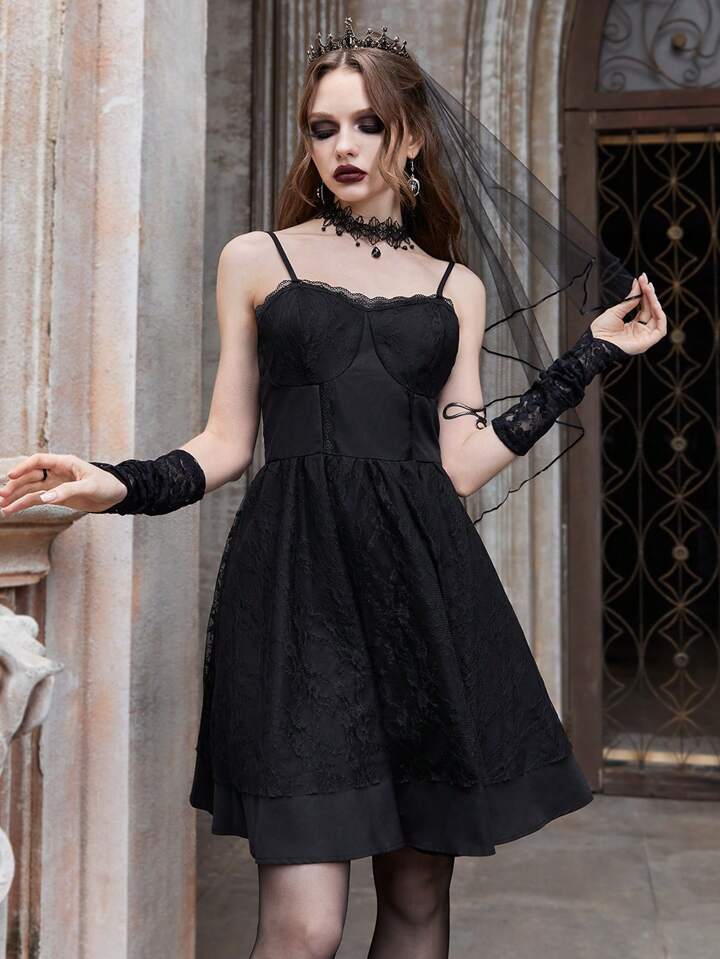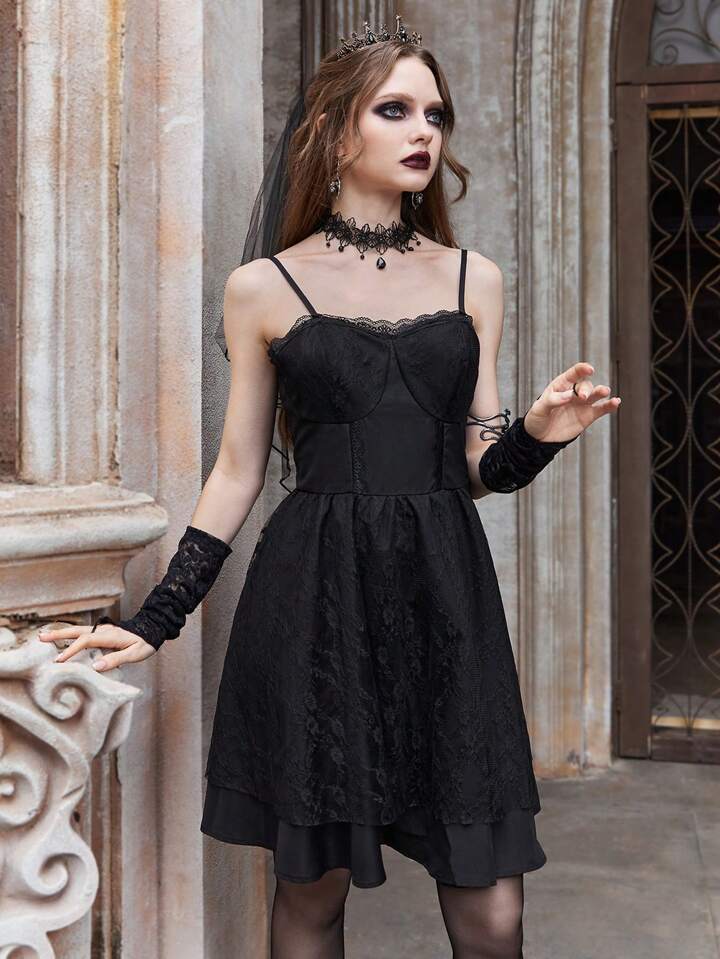 Vestido camisa con encaje en contraste