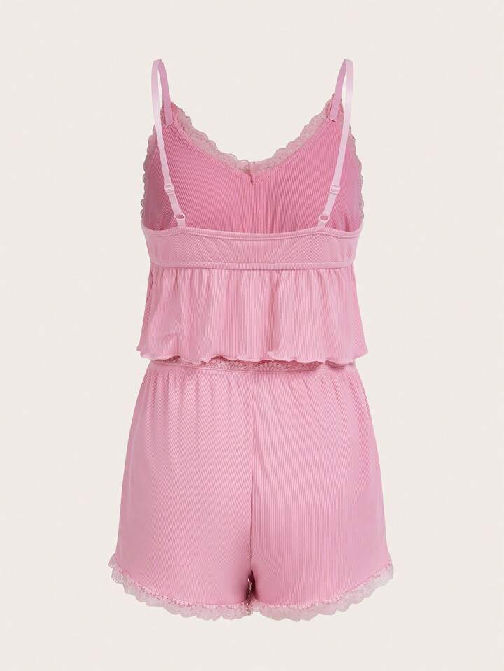 Conjunto de salón pantalones cortos con camiseta de tirantes con encaje en contraste