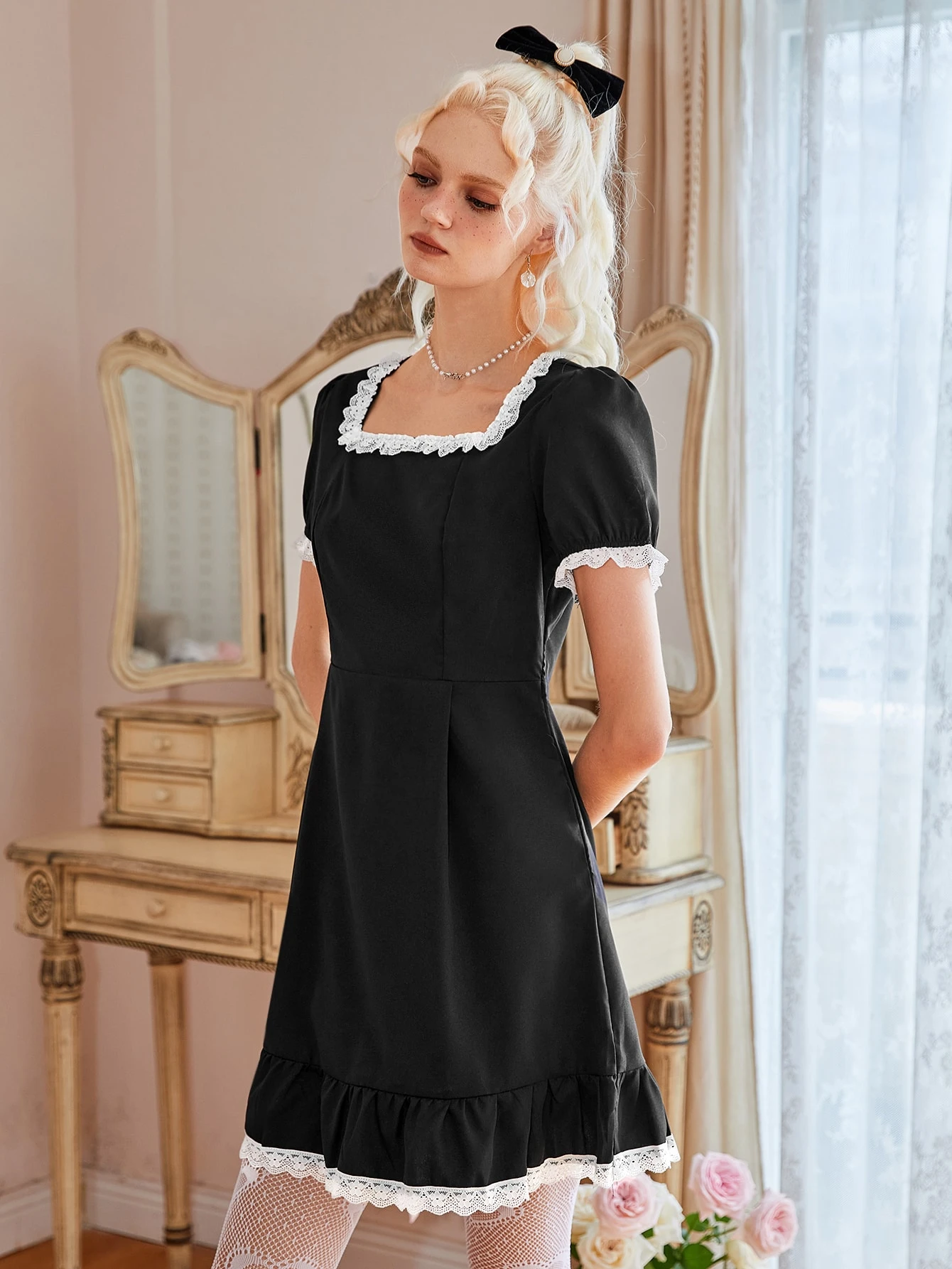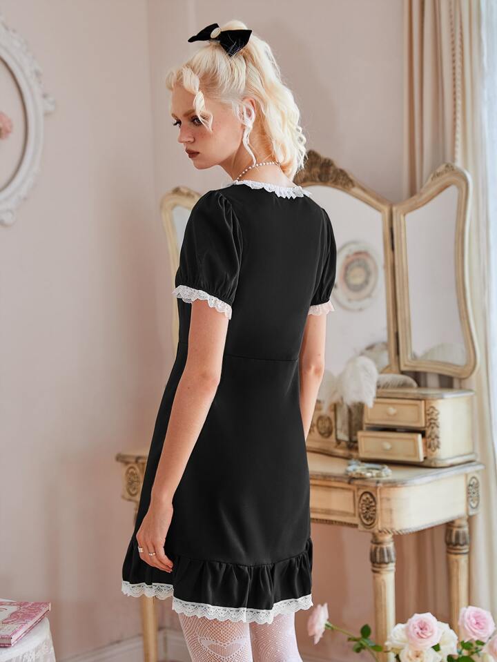 Vestido con encaje en contraste bajo con fruncido sin corsé