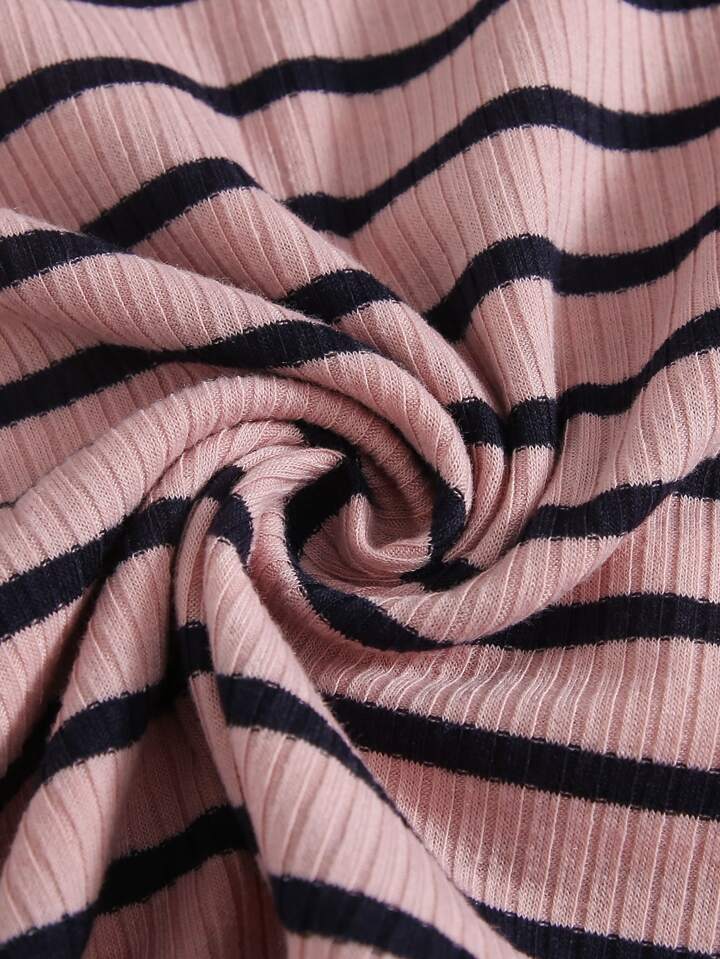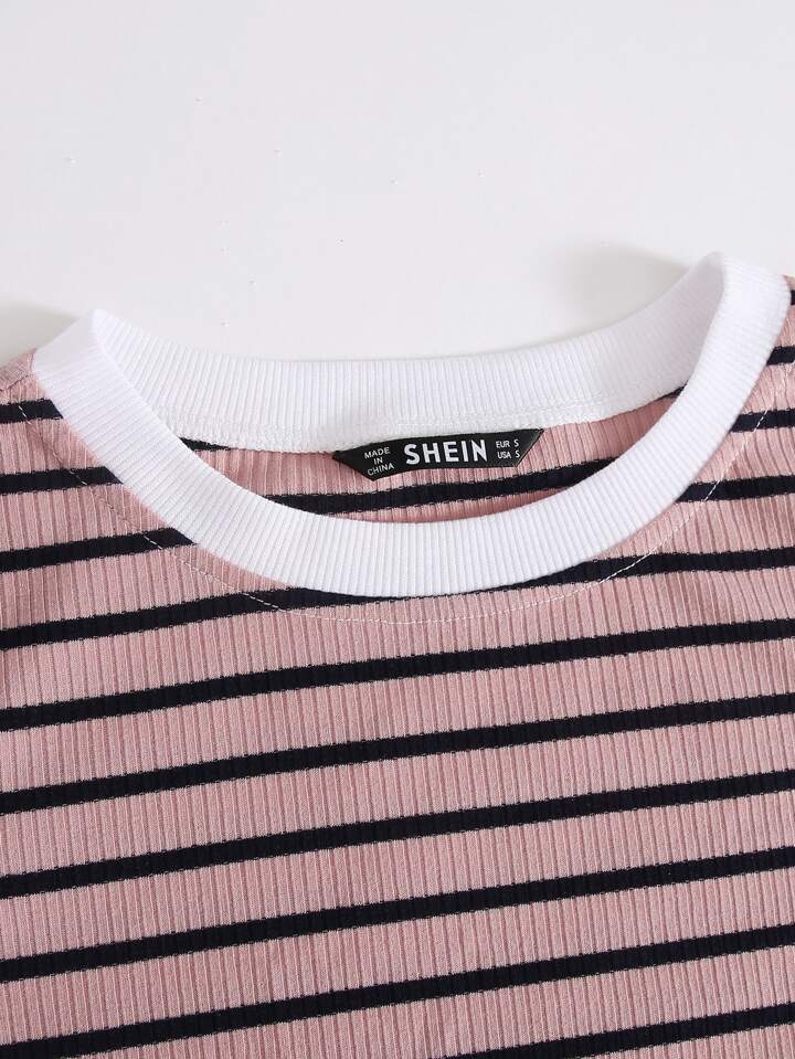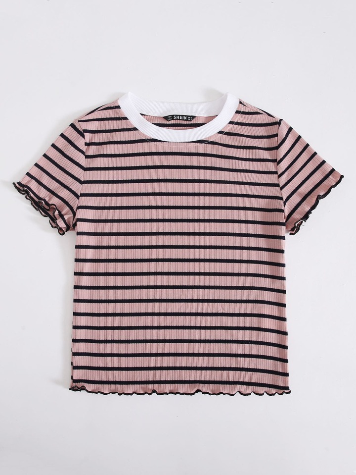 Camiseta de rayas de borde en forma de lechuga de cuello en contraste
