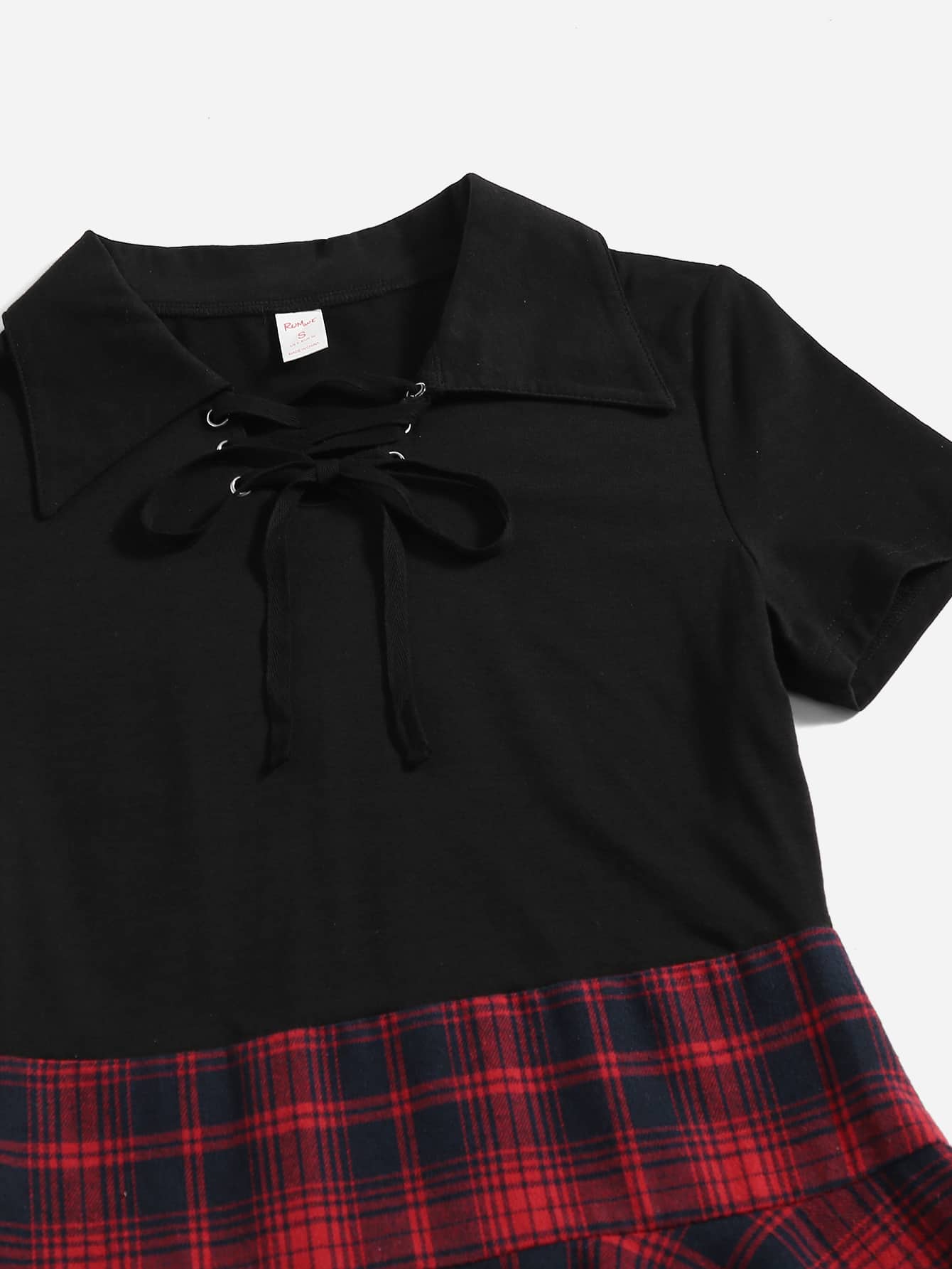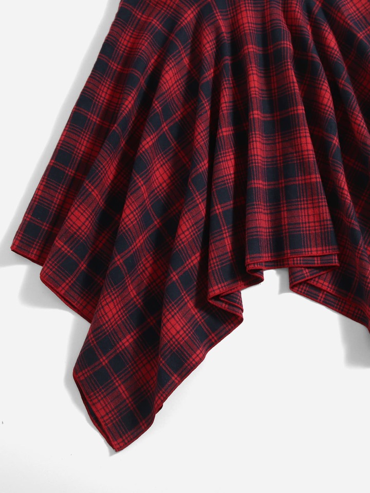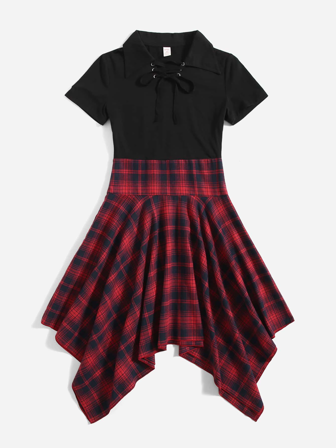 Vestido de cuadros en contraste con cordón bajo asimétrico