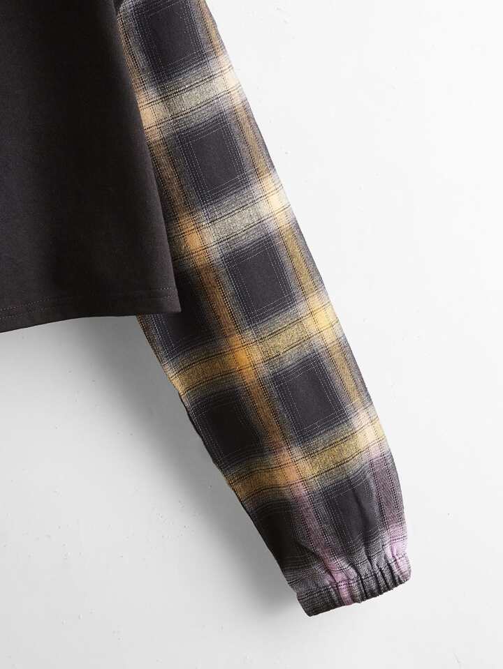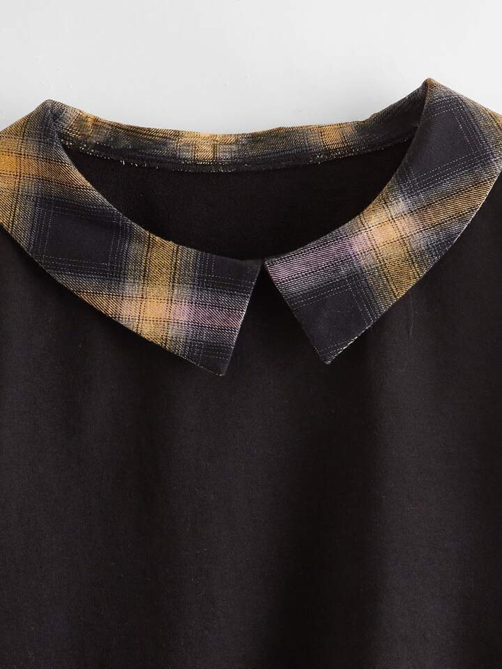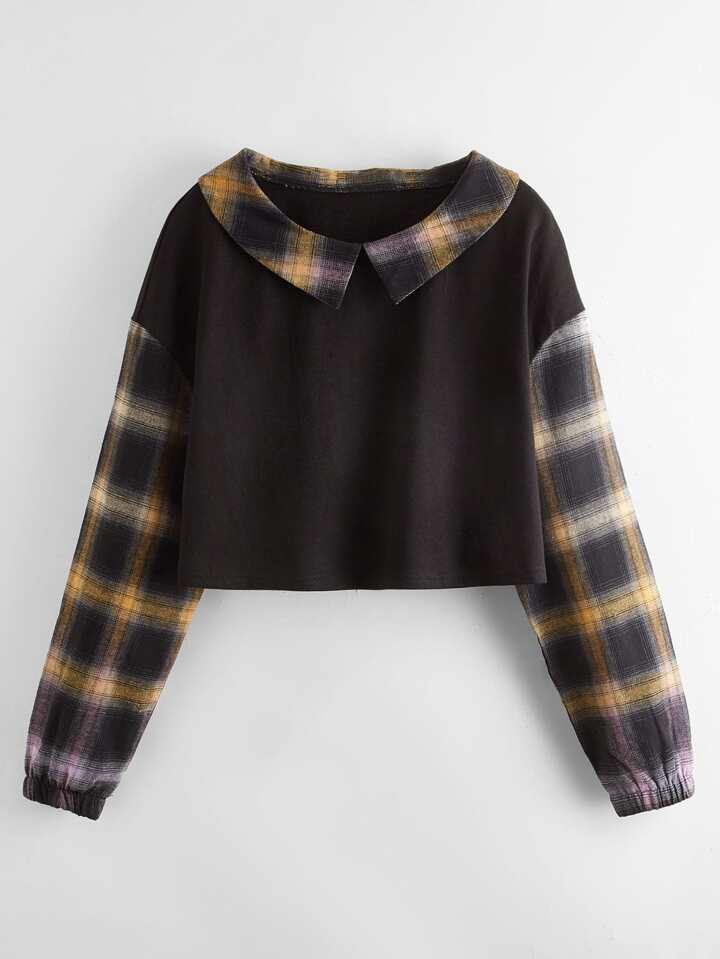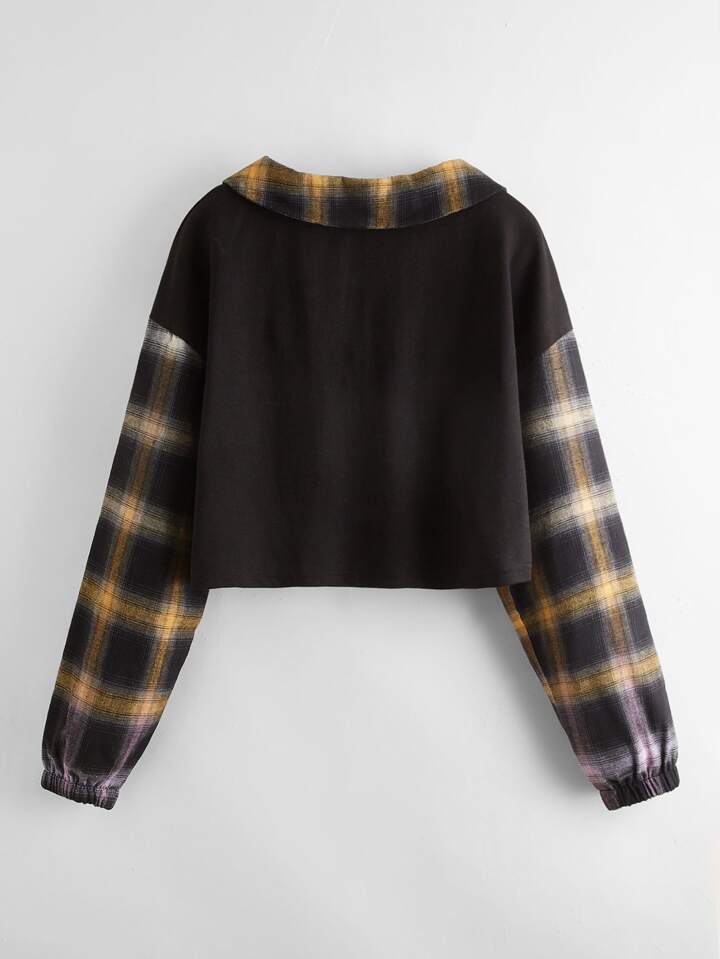 Sudadera Corta Con Cuello De Cuadros Contrastantes