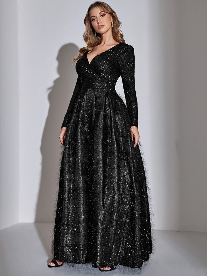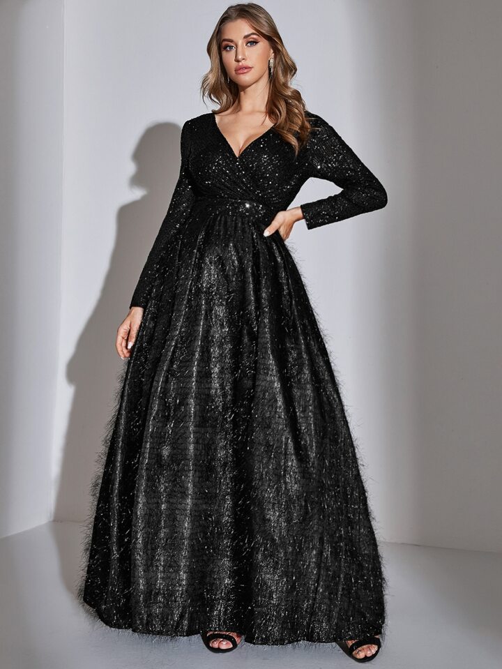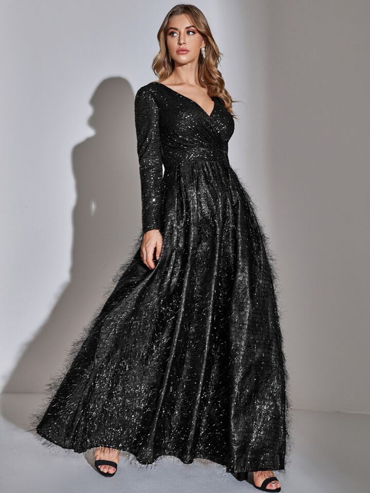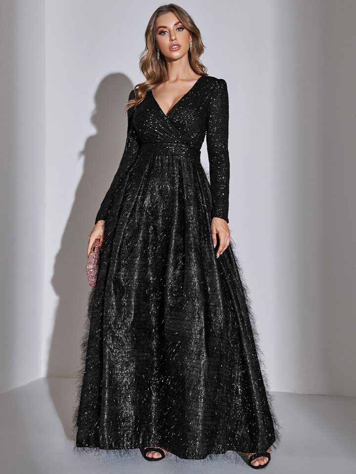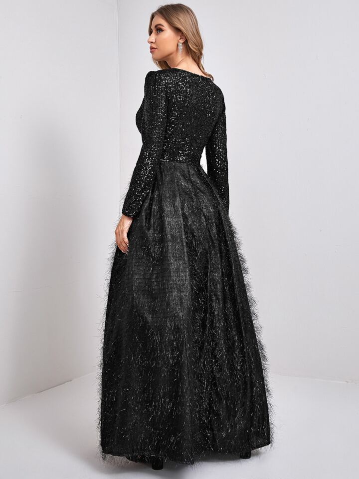 Vestido de fiesta cruzado delantero con fleco con lentejuela en contraste
