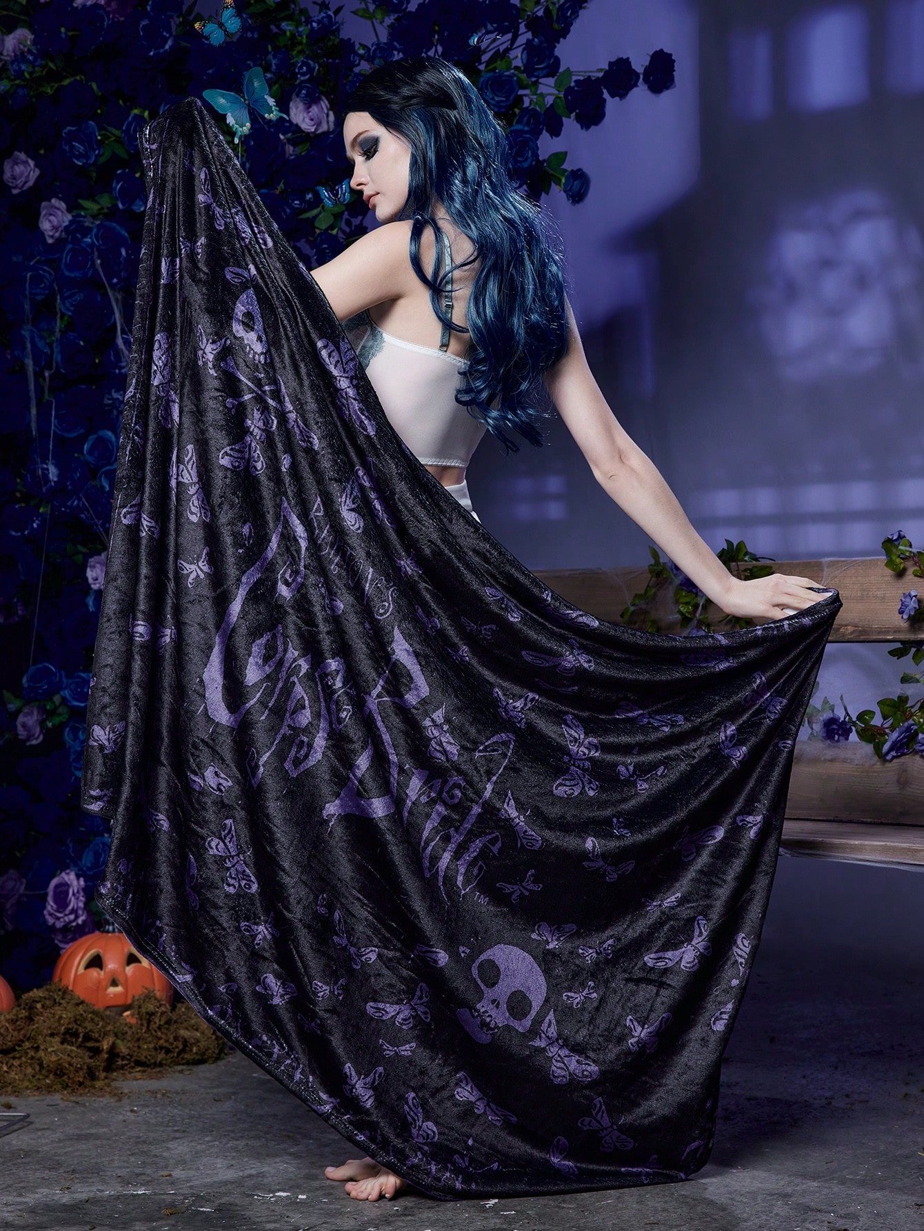 Corpse Bride | ROMWE 1 pieza manta con gráfico de calavera y letra, manta decorativa lavable punk