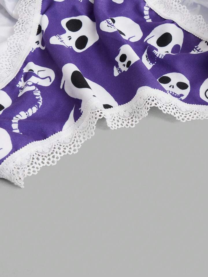 Corpse Bride | ROMWE 3 Paquetes De Calzoncillos Con Encaje Contrastante Con Gráficos De Calavera Y Flores