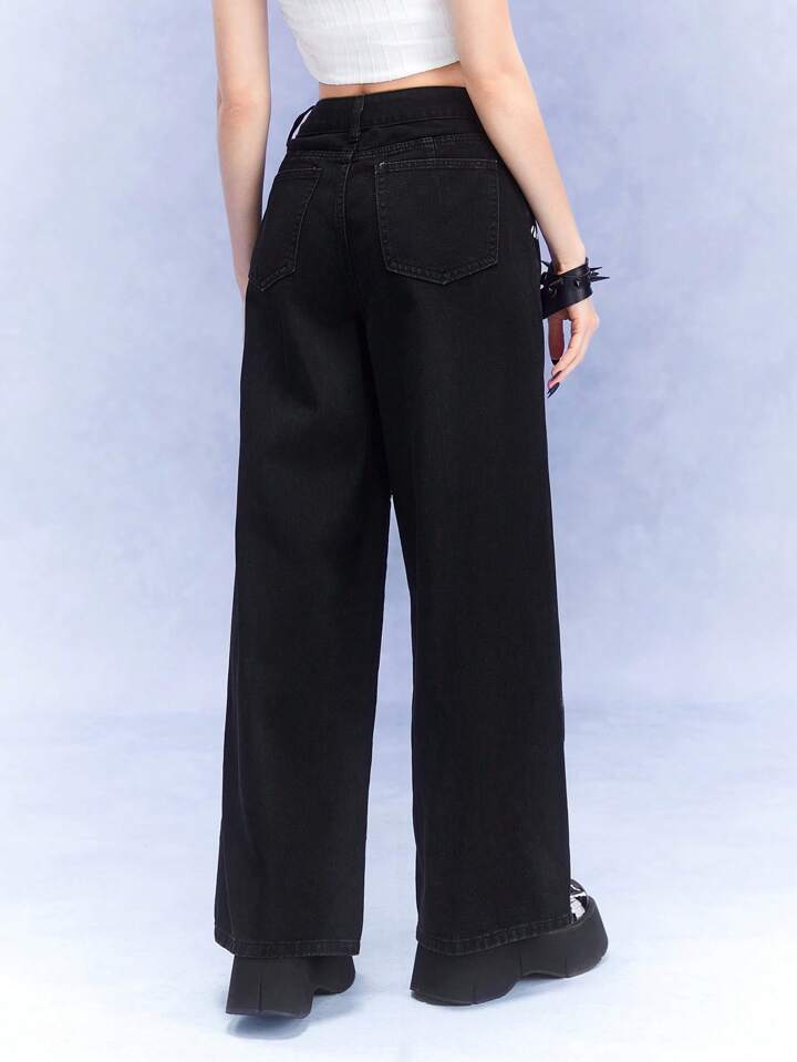 Corpse Bride | ROMWE Jeans de pierna ancha con estampado de dibujos animados de tonos oscuros, informal