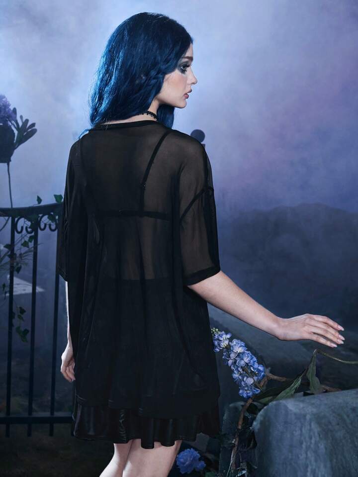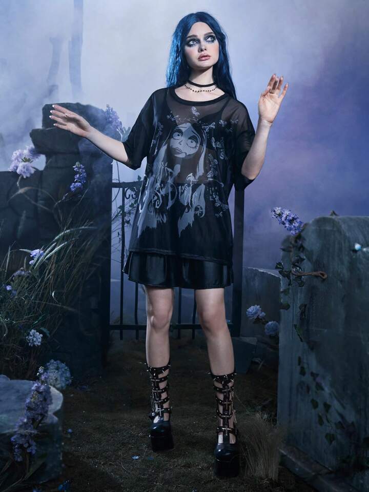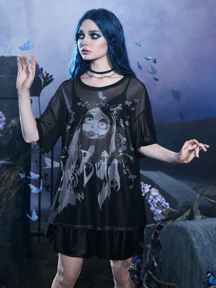 Corpse Bride | ROMWE Top De Malla Con Hombros Caídos Y Gráficos De Figura