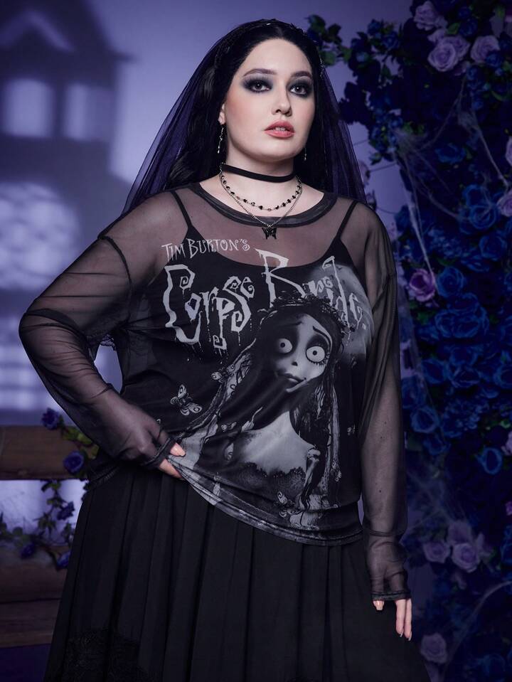 Corpse Bride | ROMWE Top De Malla De Hombro Caído De Figura Plus Sin Top Cami Con Gráficos