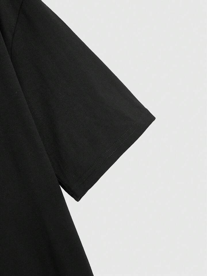 Corpse Bride | ROMWE Camiseta de manga corta holgada con estampado de dibujos animados, cuello con encaje de contraste de color y hombros caídos para mujeres, escuela